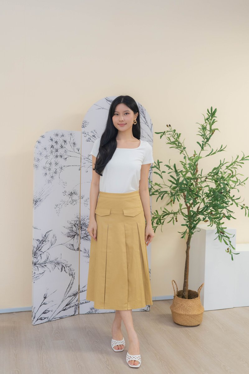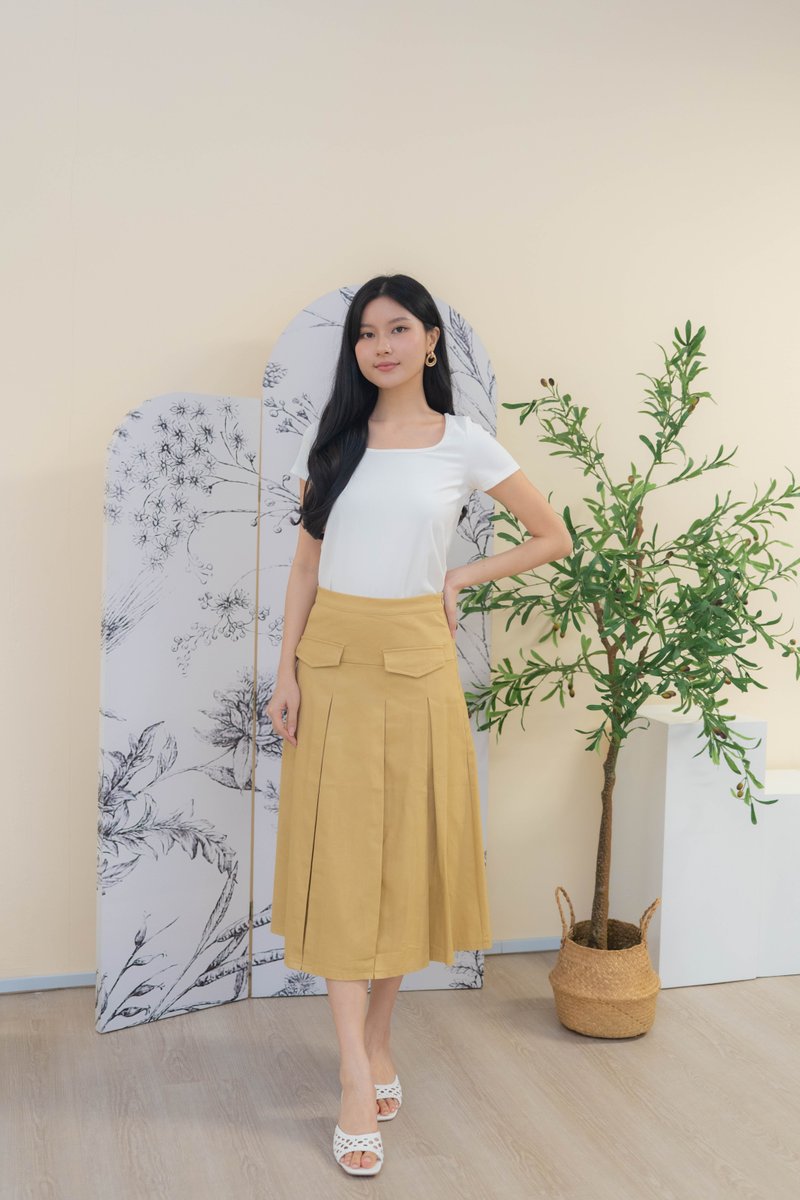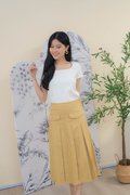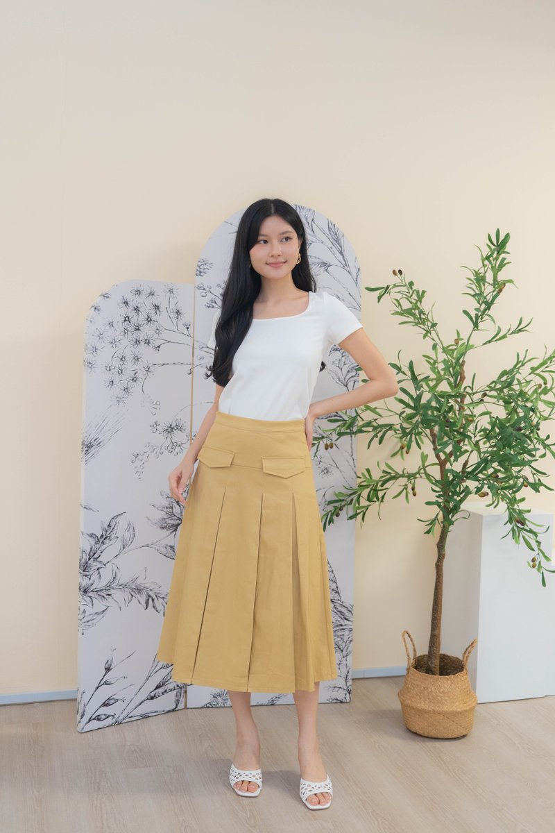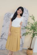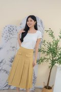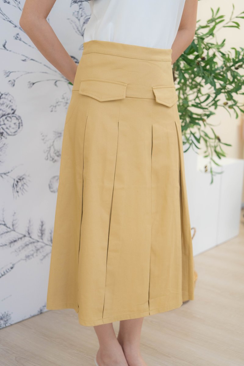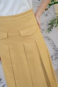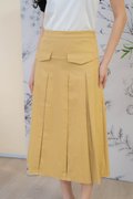 Mirelle Denim Pleated Skirt In Khaki