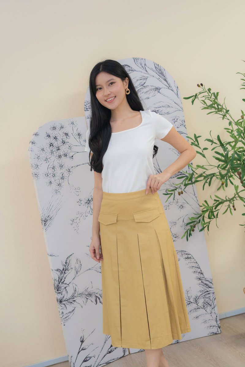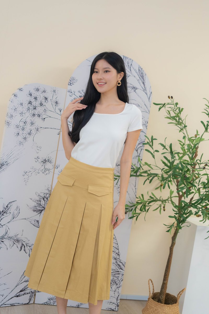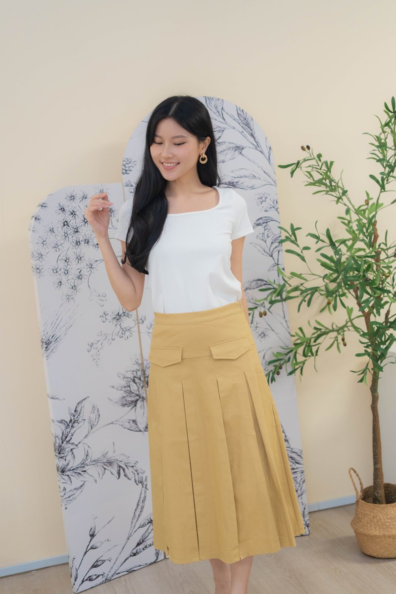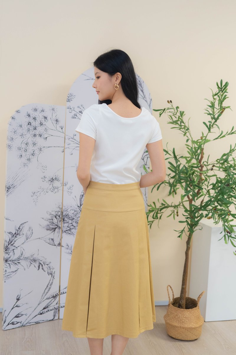 Mirelle Denim Pleated Skirt In Khaki
