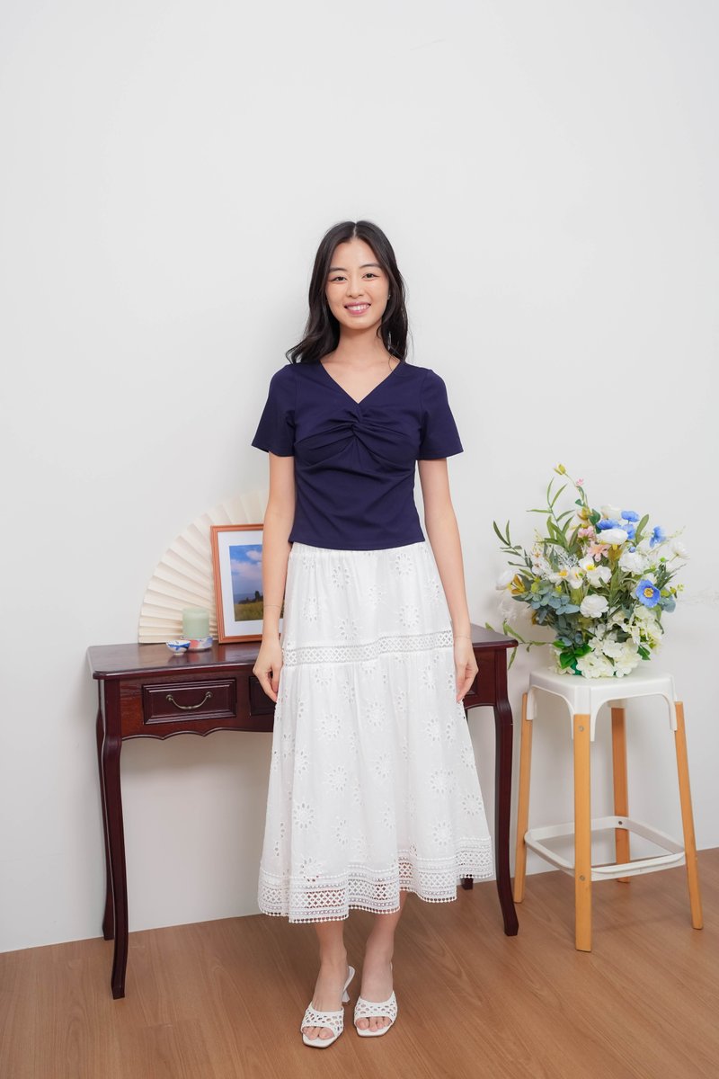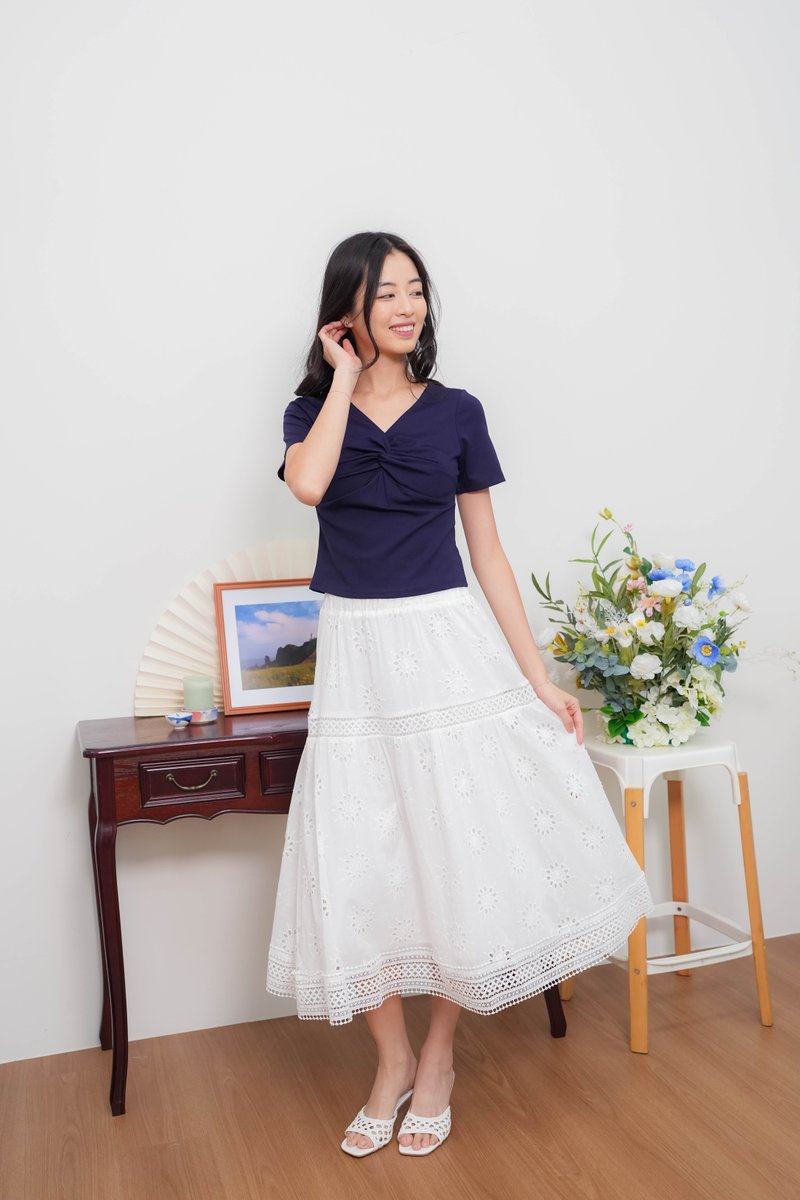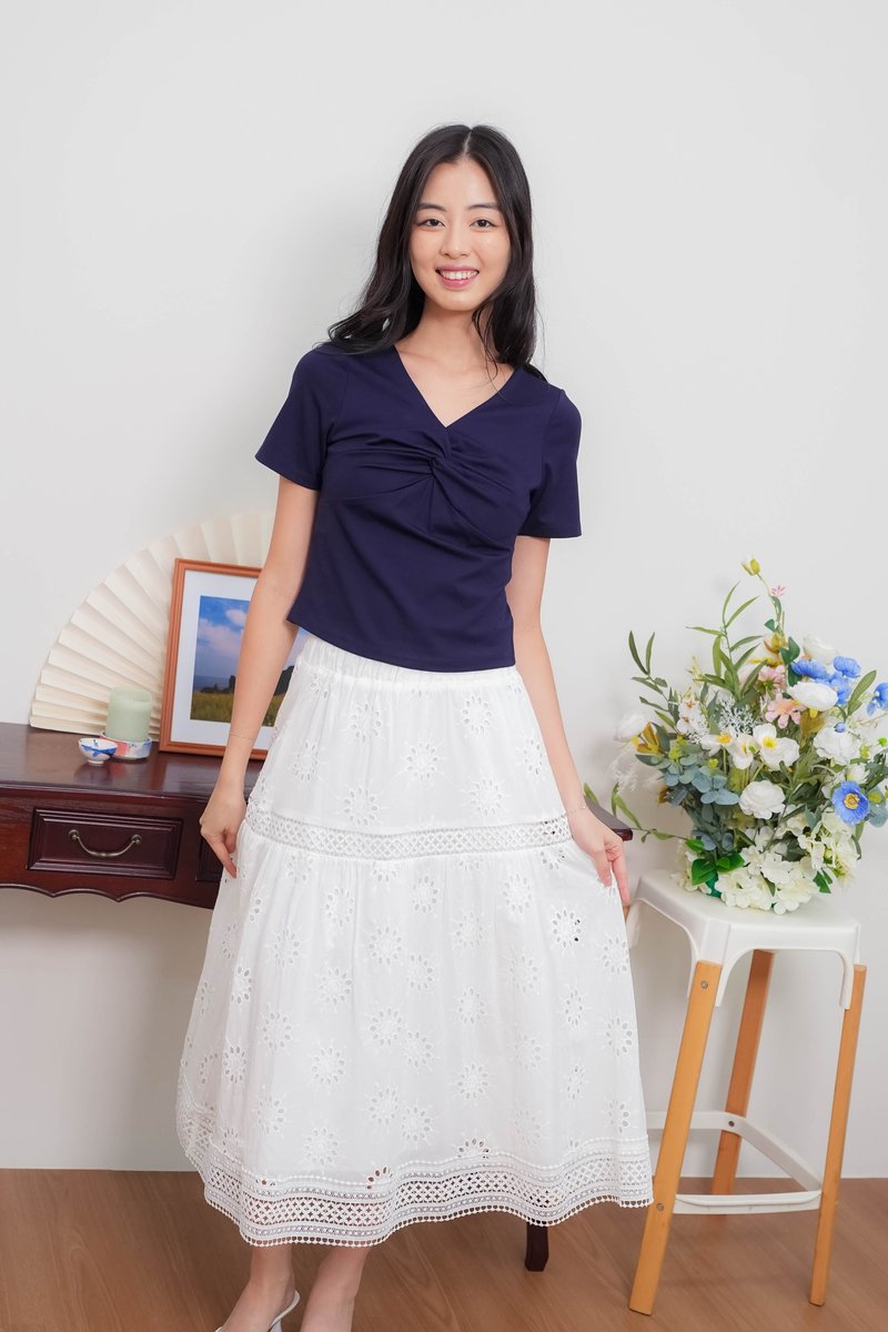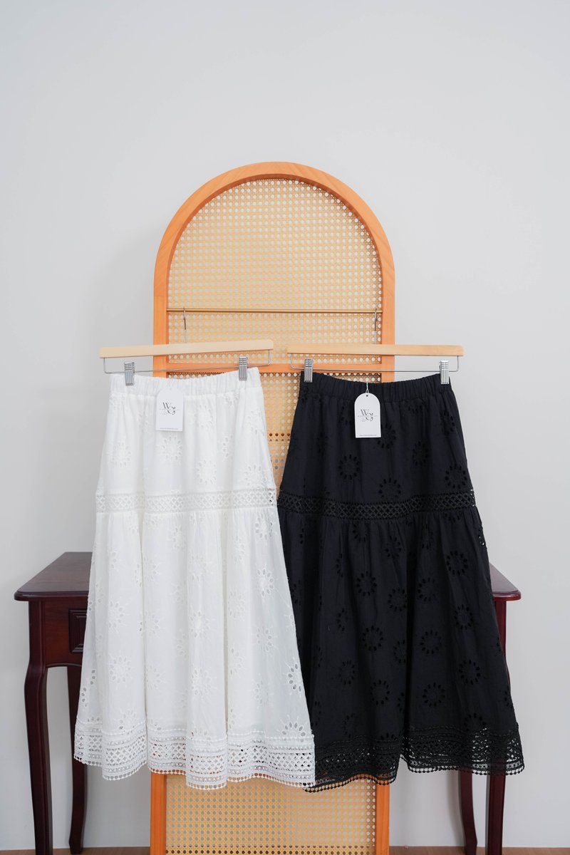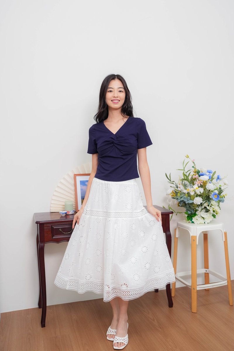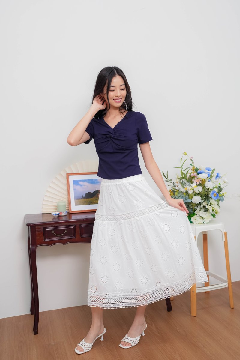 Remi Eyelet Lattice Skirt In White