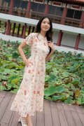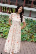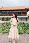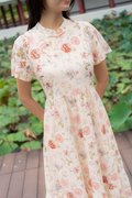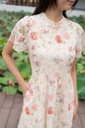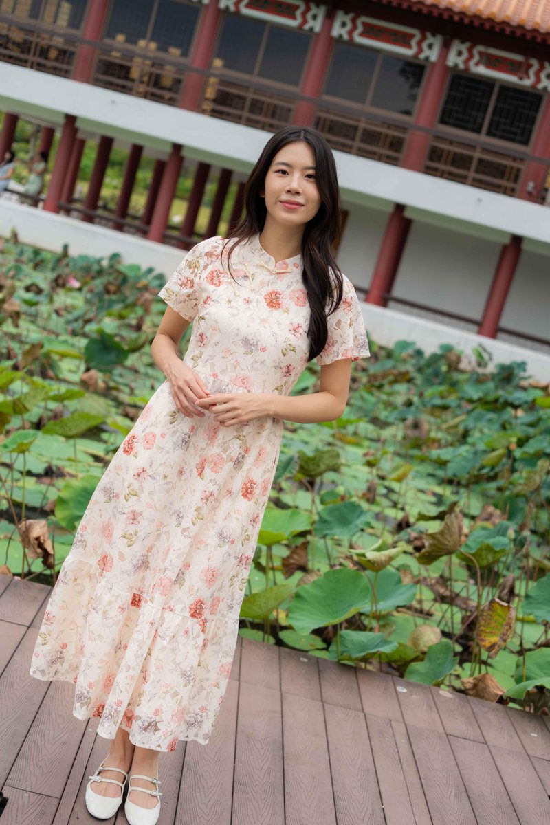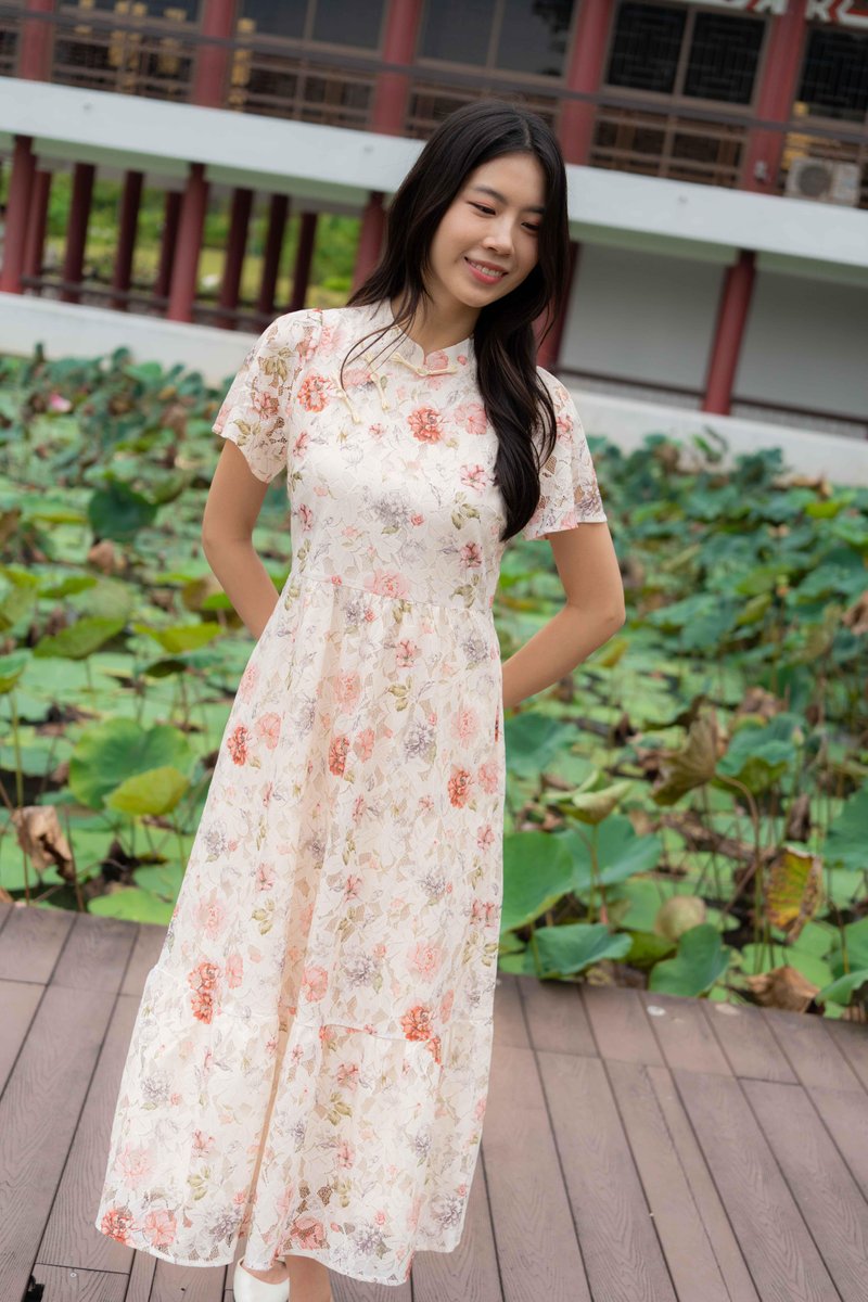 Amber Lace Sleeve Cheongsam In Pink Floral