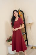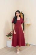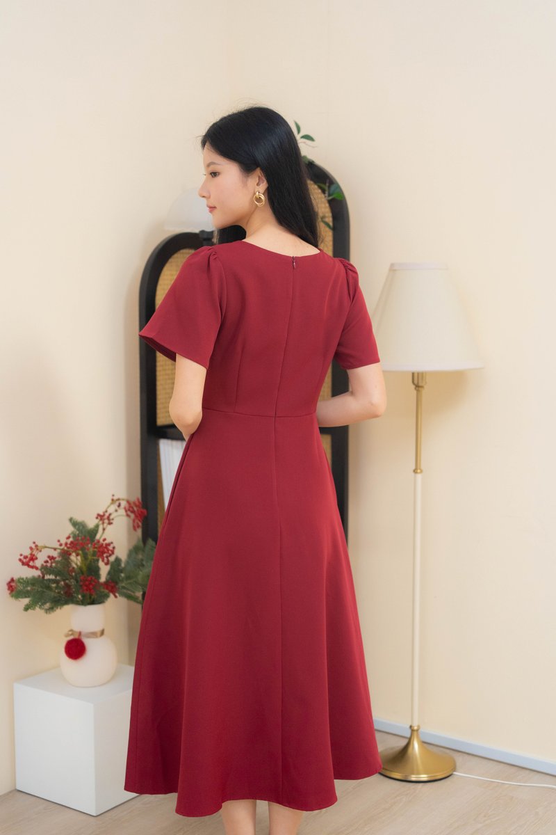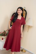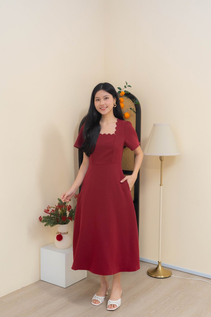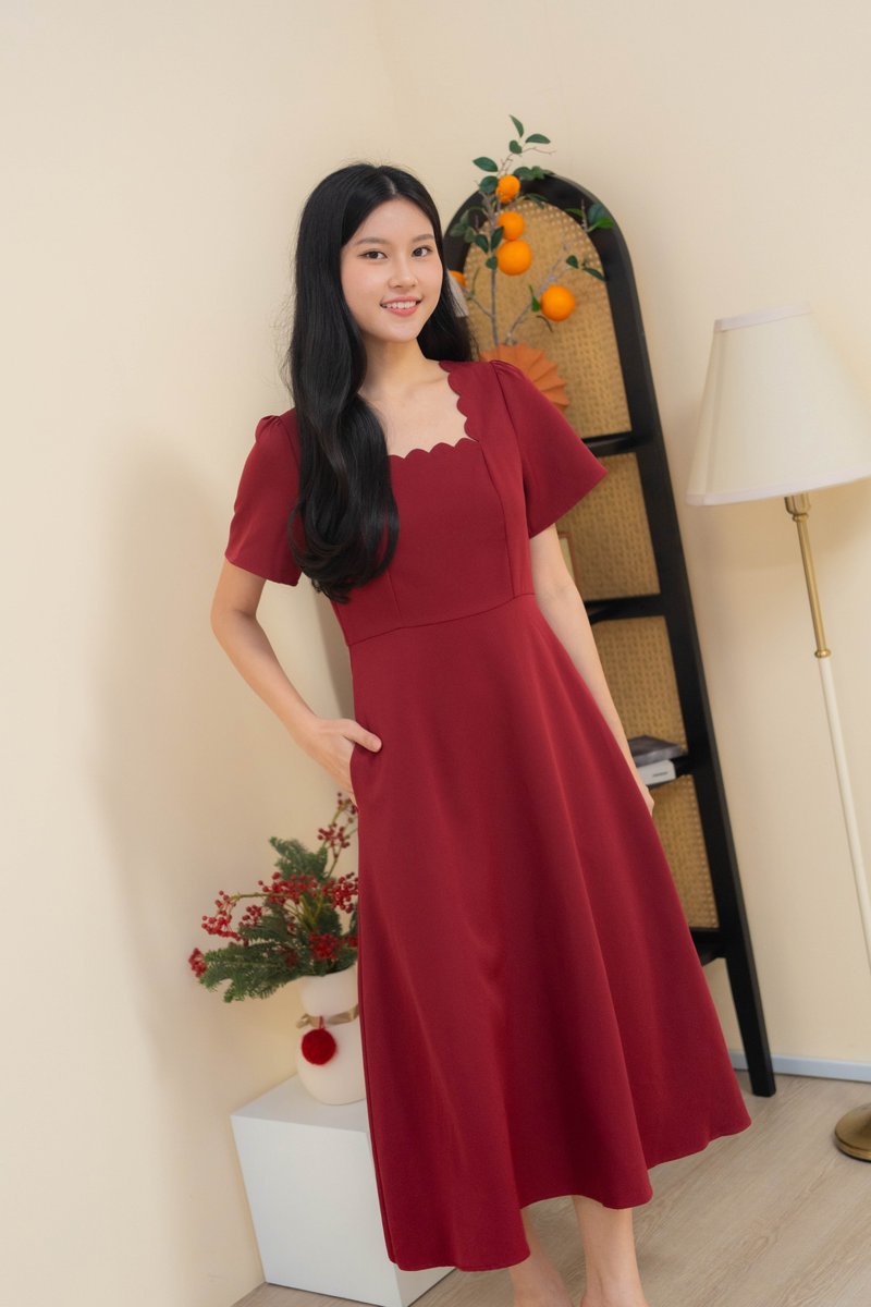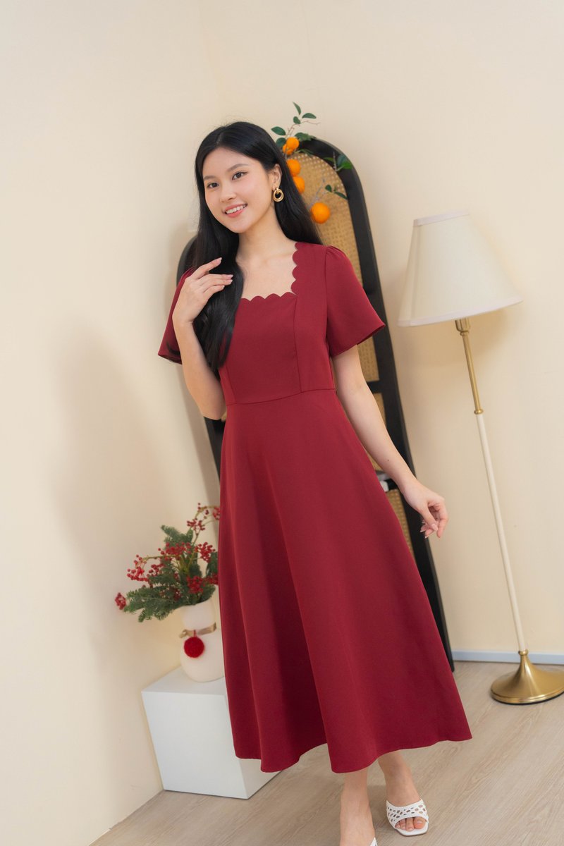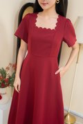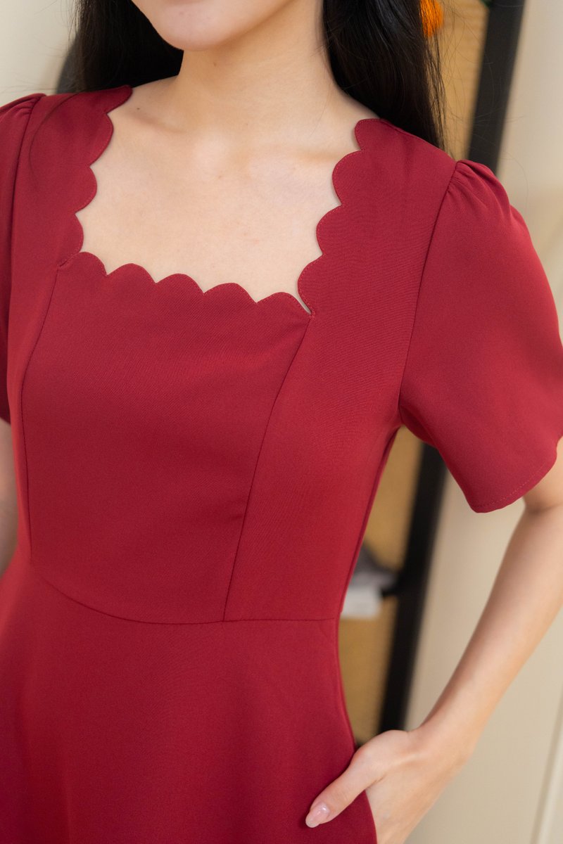 Dahlia Scallop Neckline Dress In Wine Red