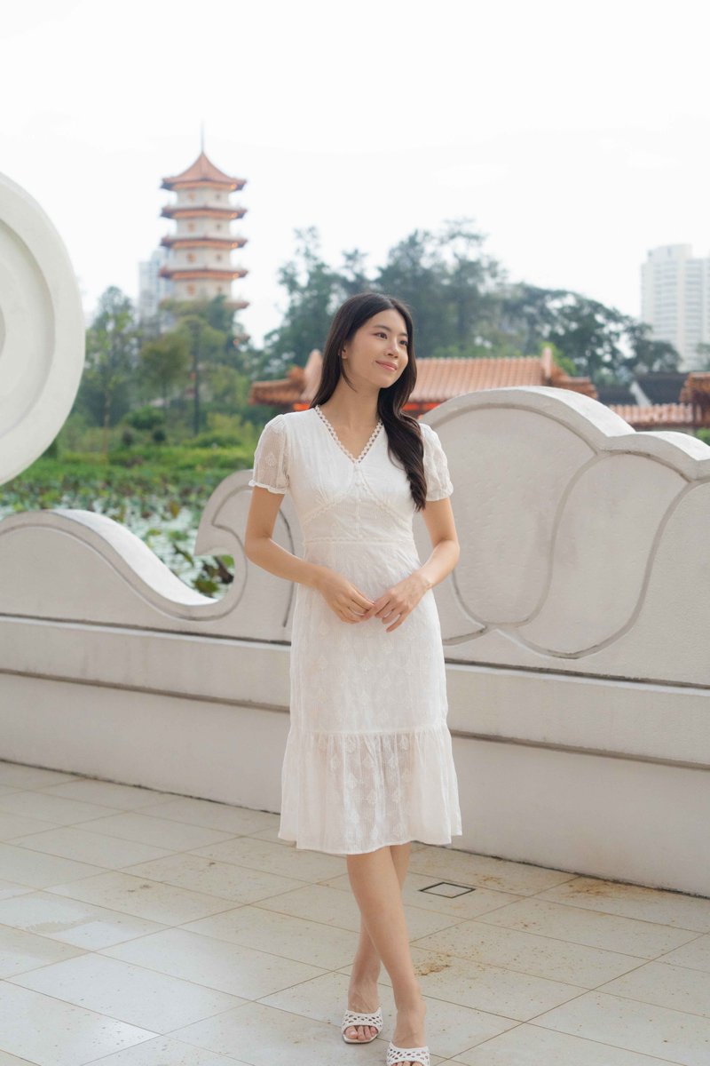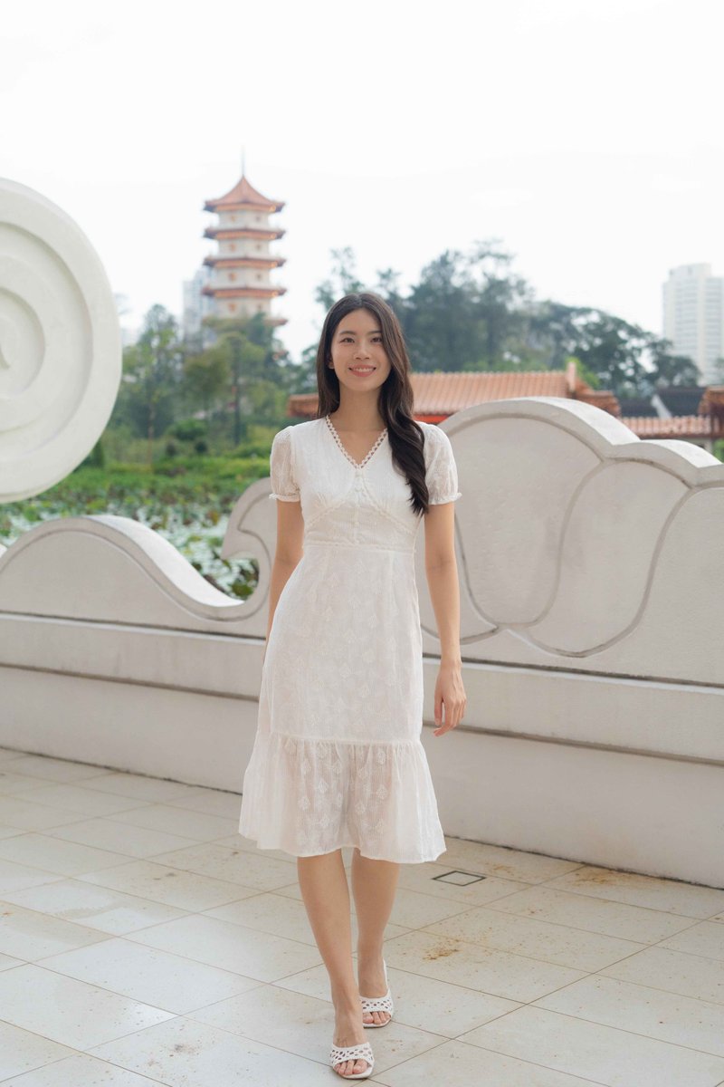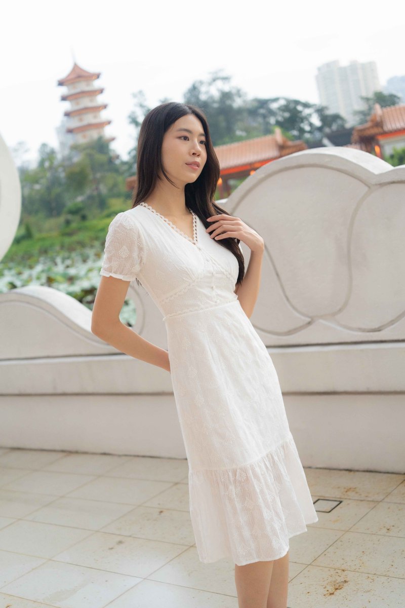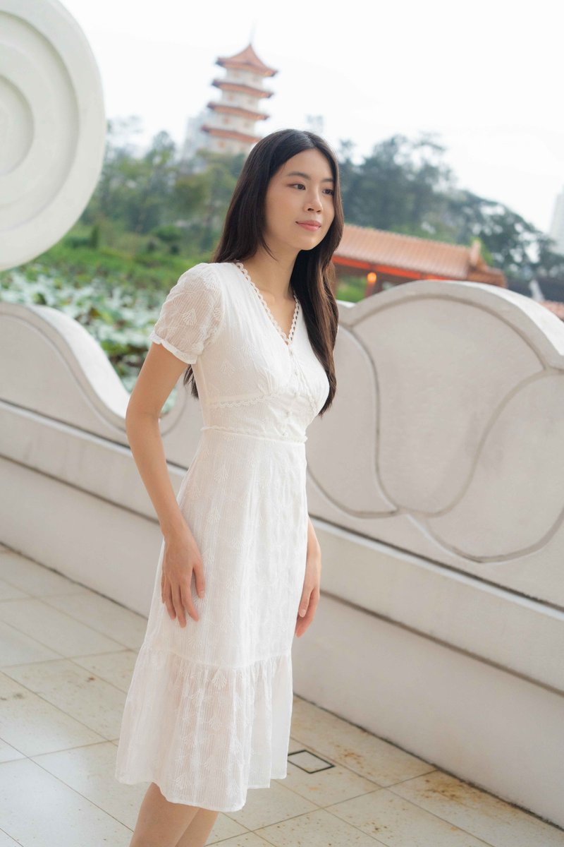 Elise Sleeves V Neck Dress In White