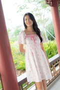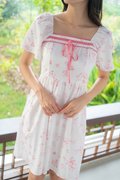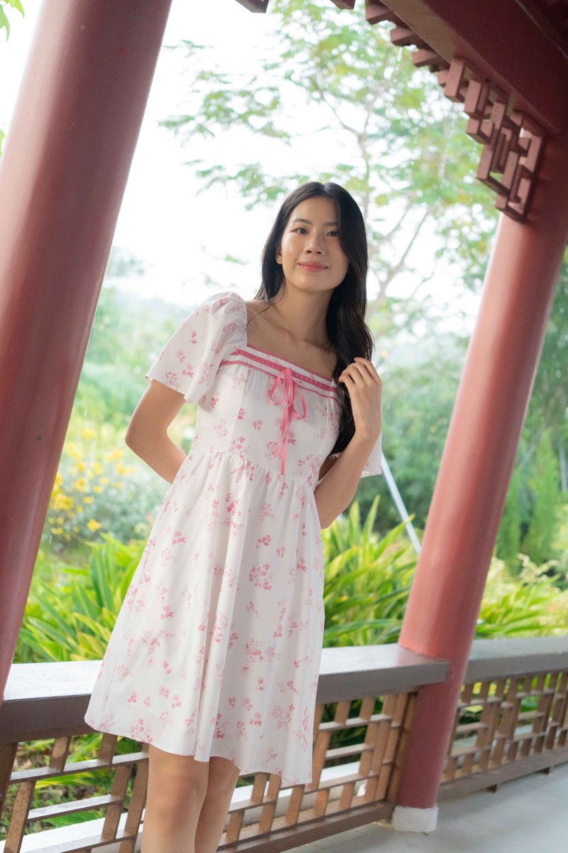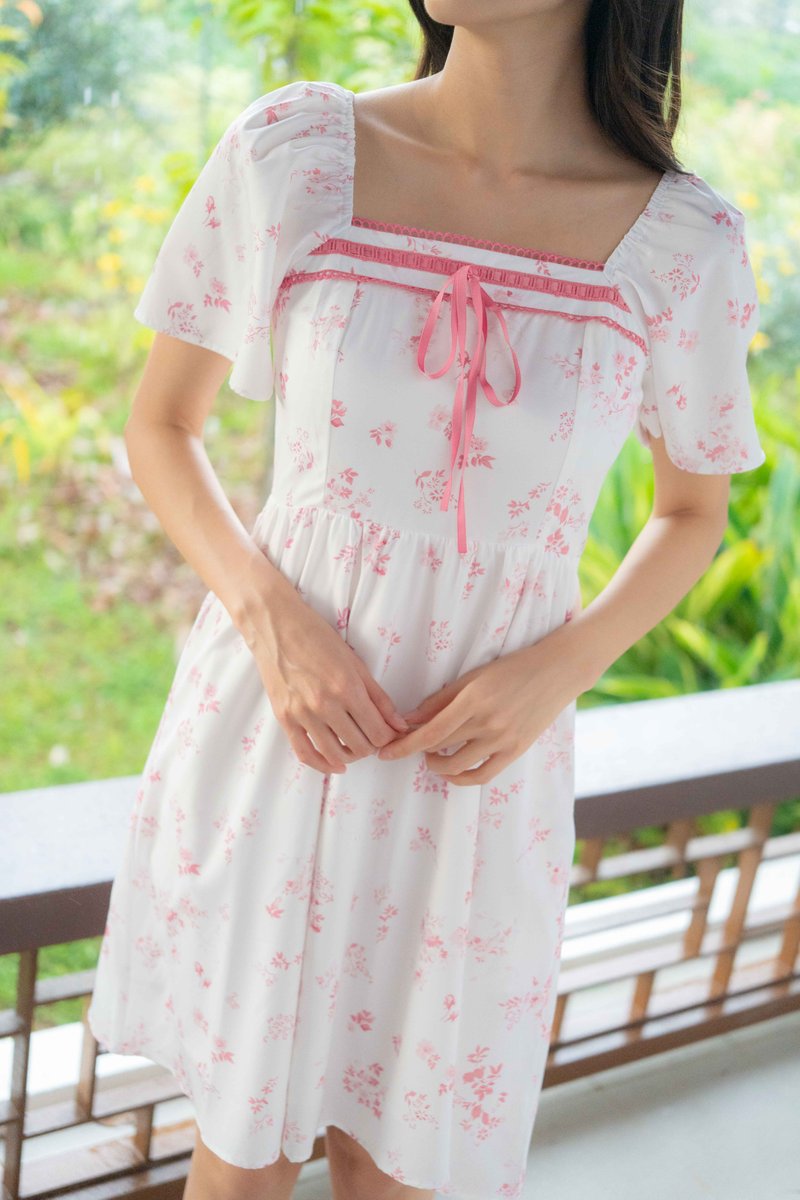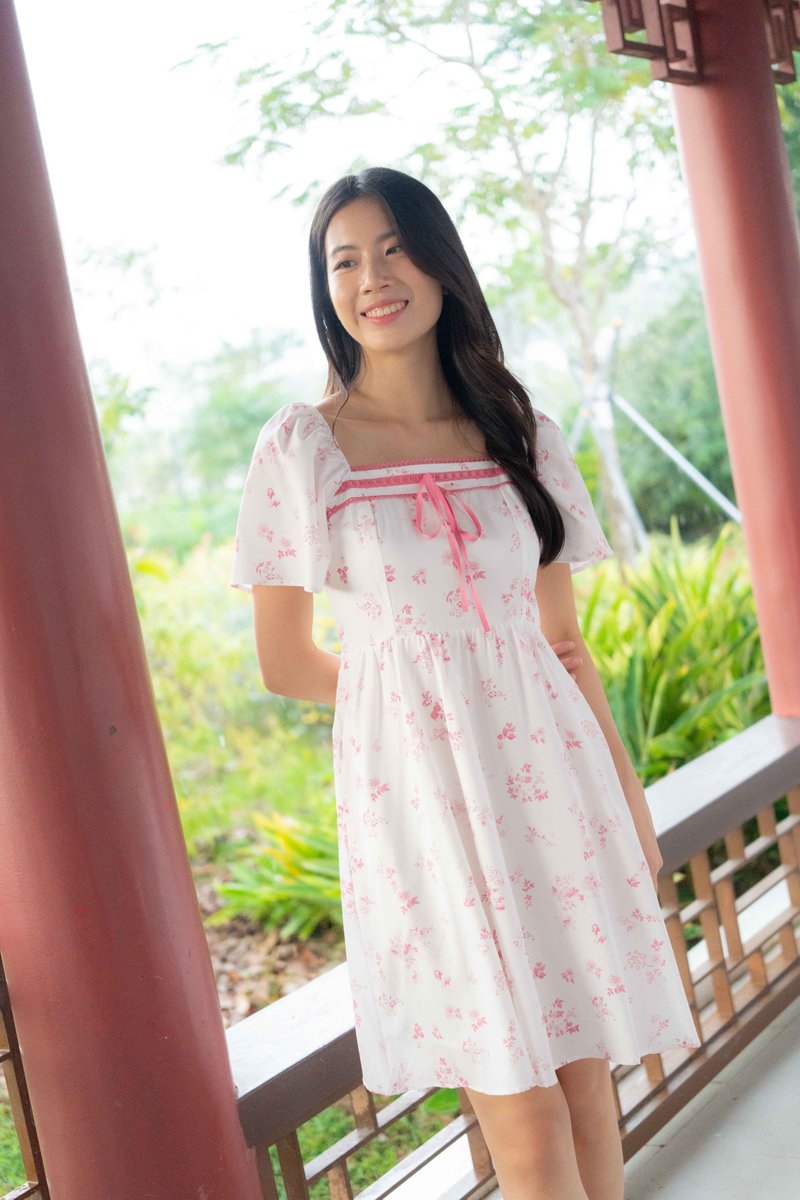 Evangeline Ribbon Flutter Sleeves Dress In Pink