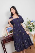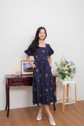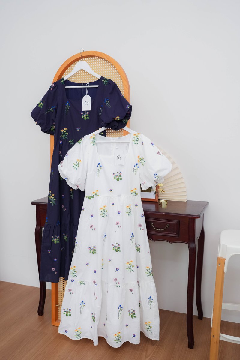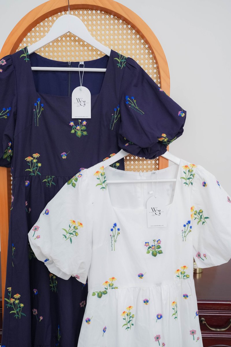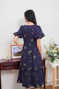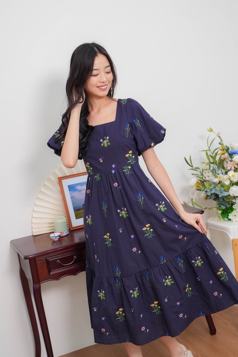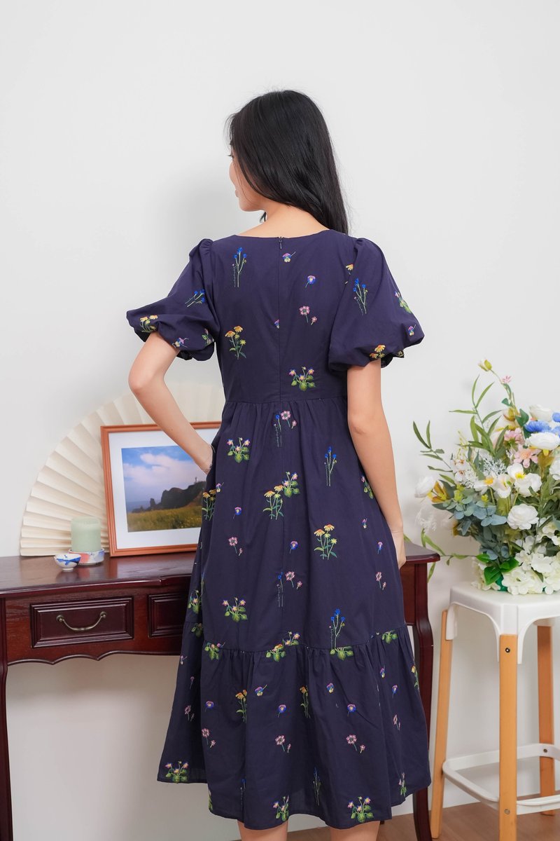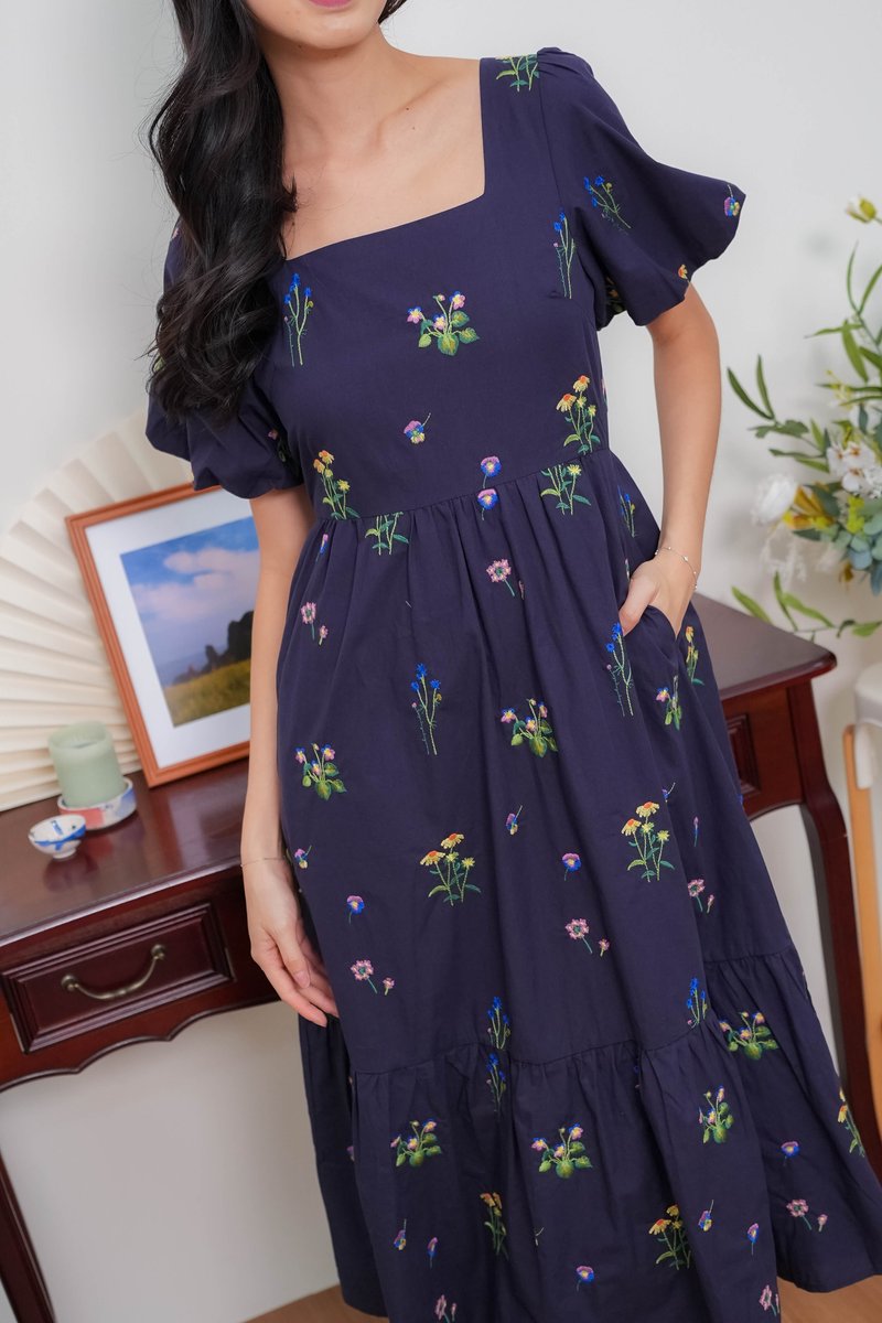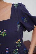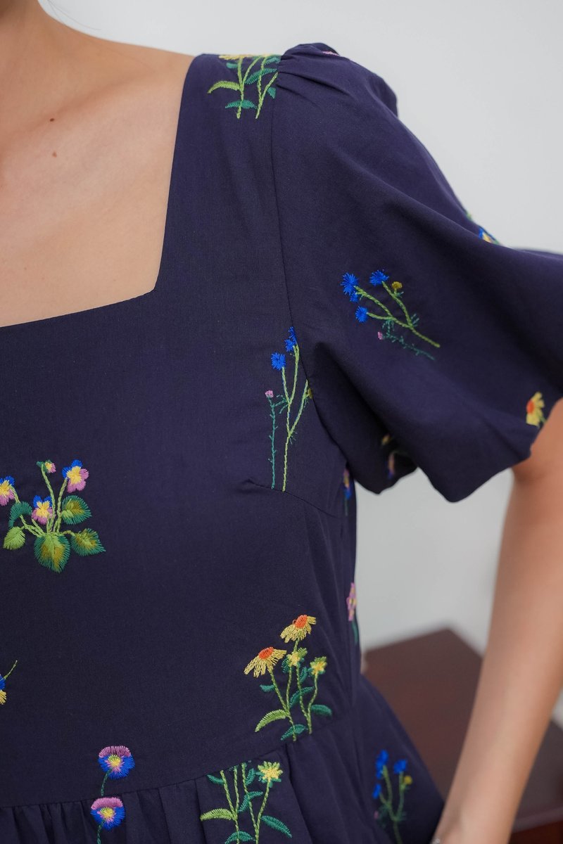 Gracey Flower Embroidery Sleeve Dress In Navy