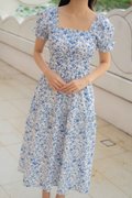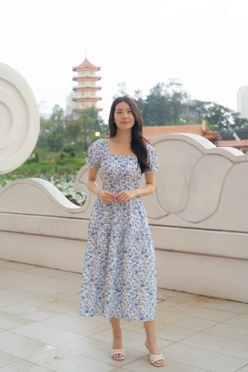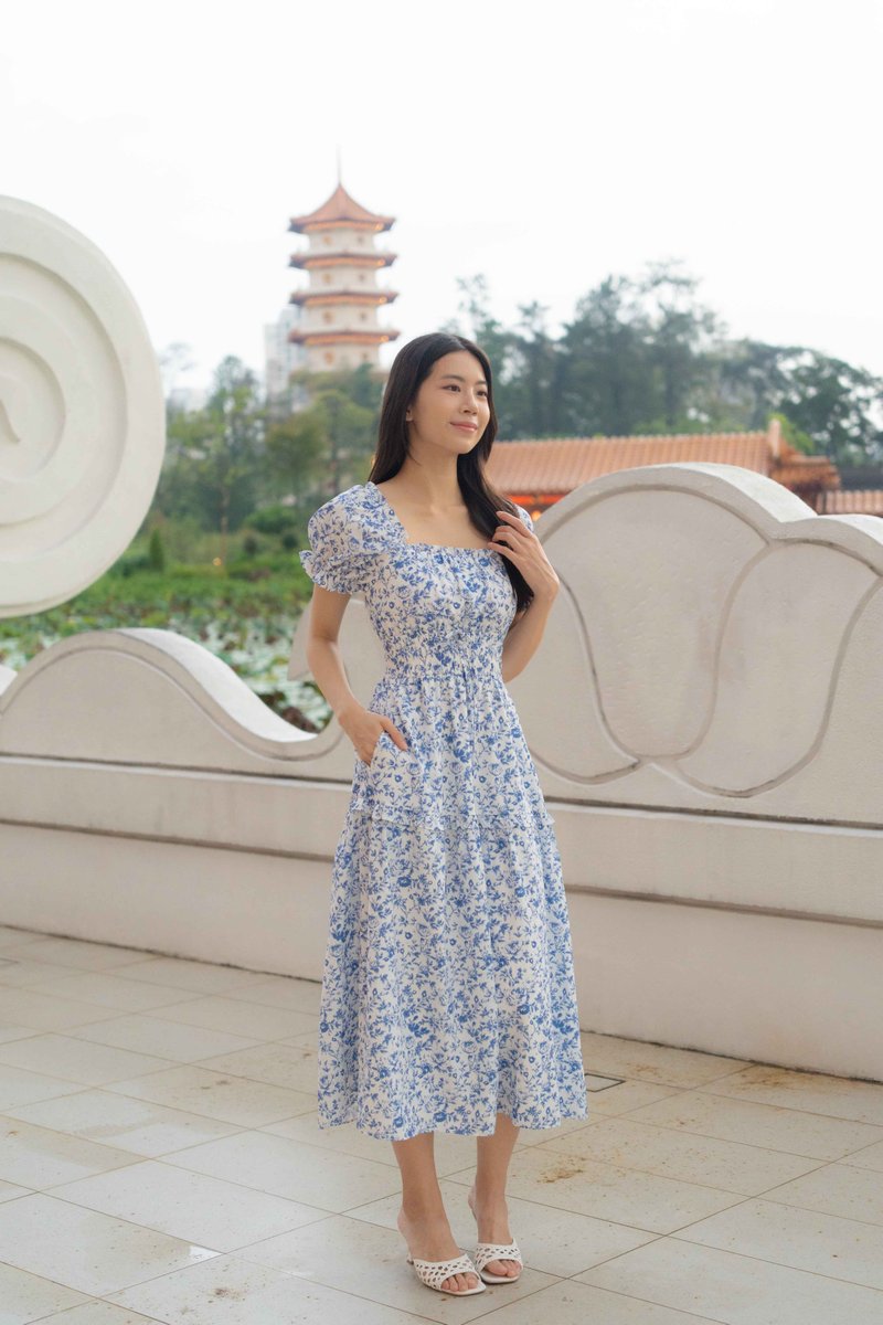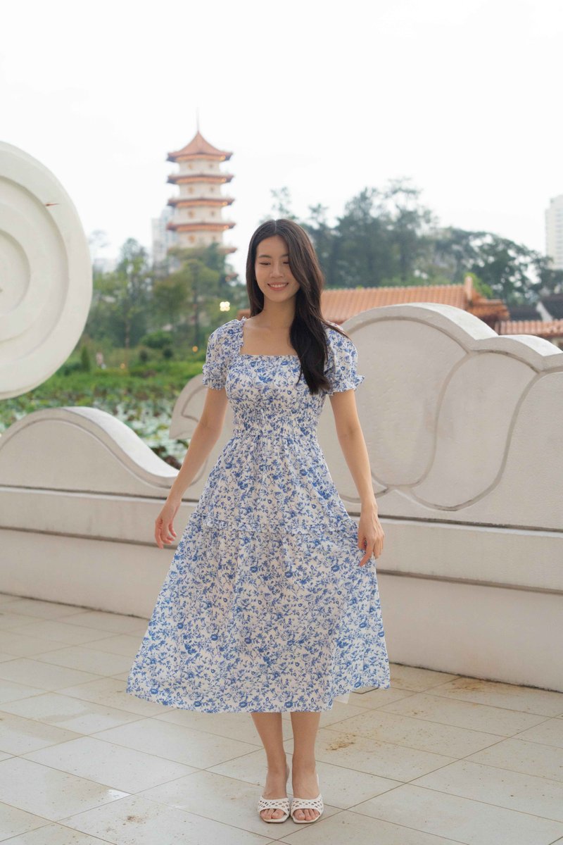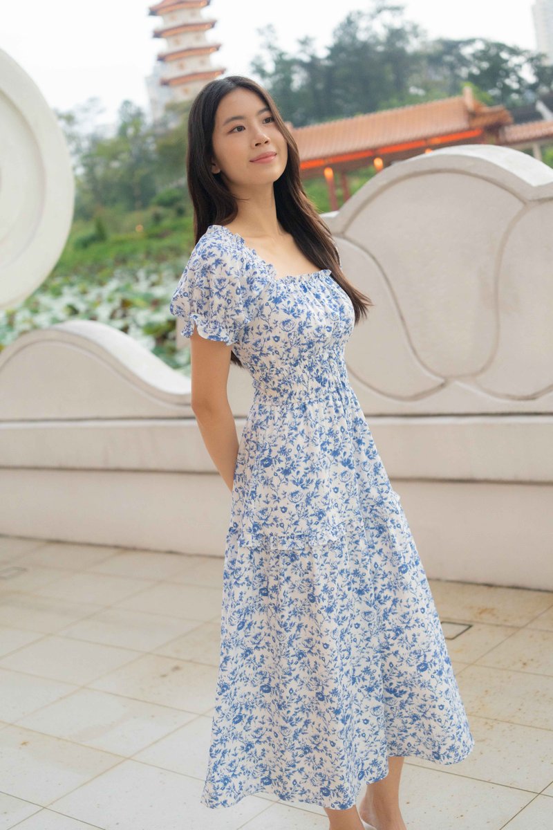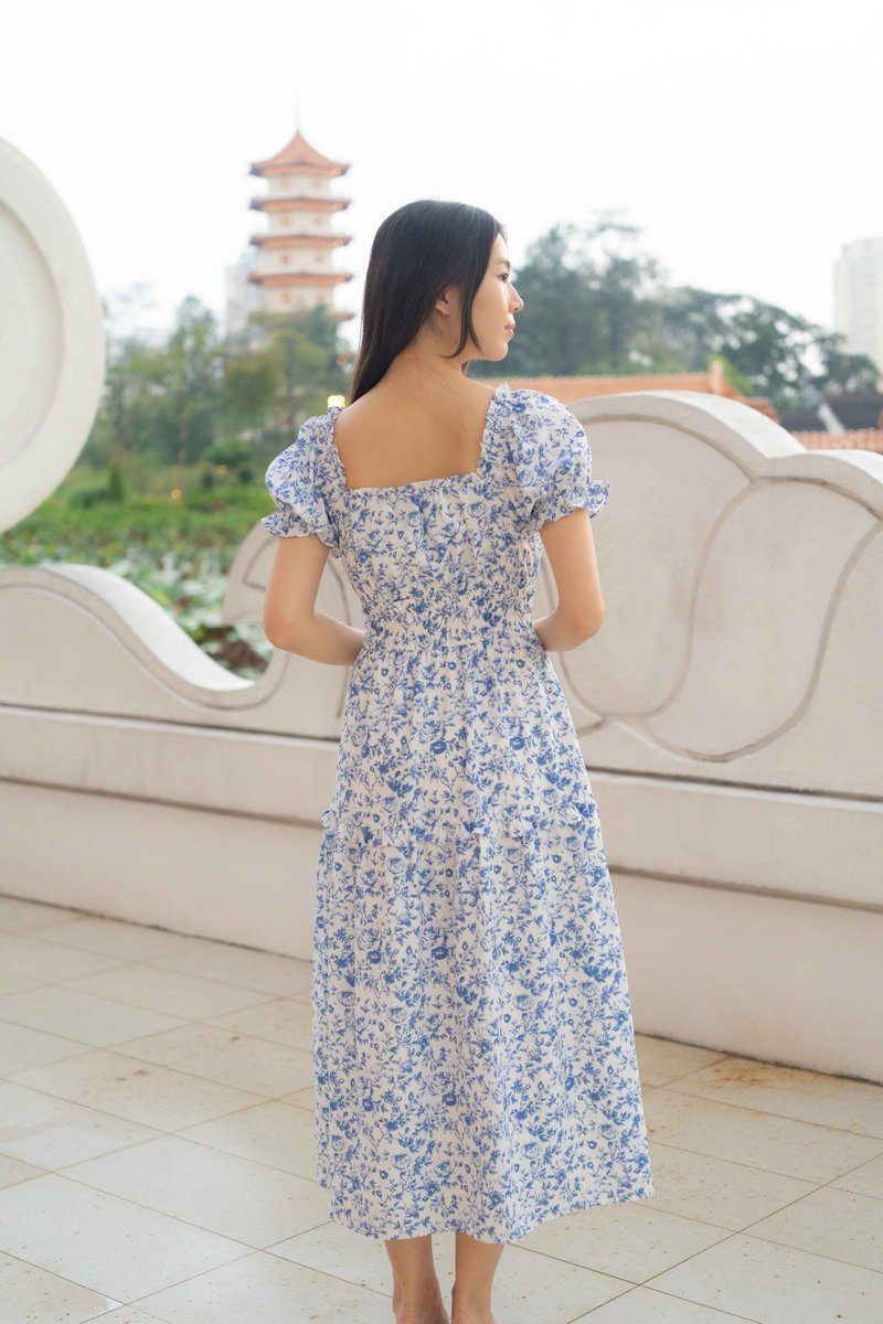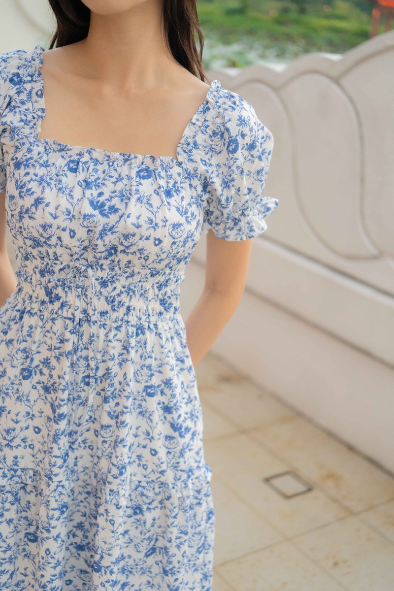Isabelle Sleeves Waist Dress In Porcelain Prints