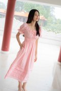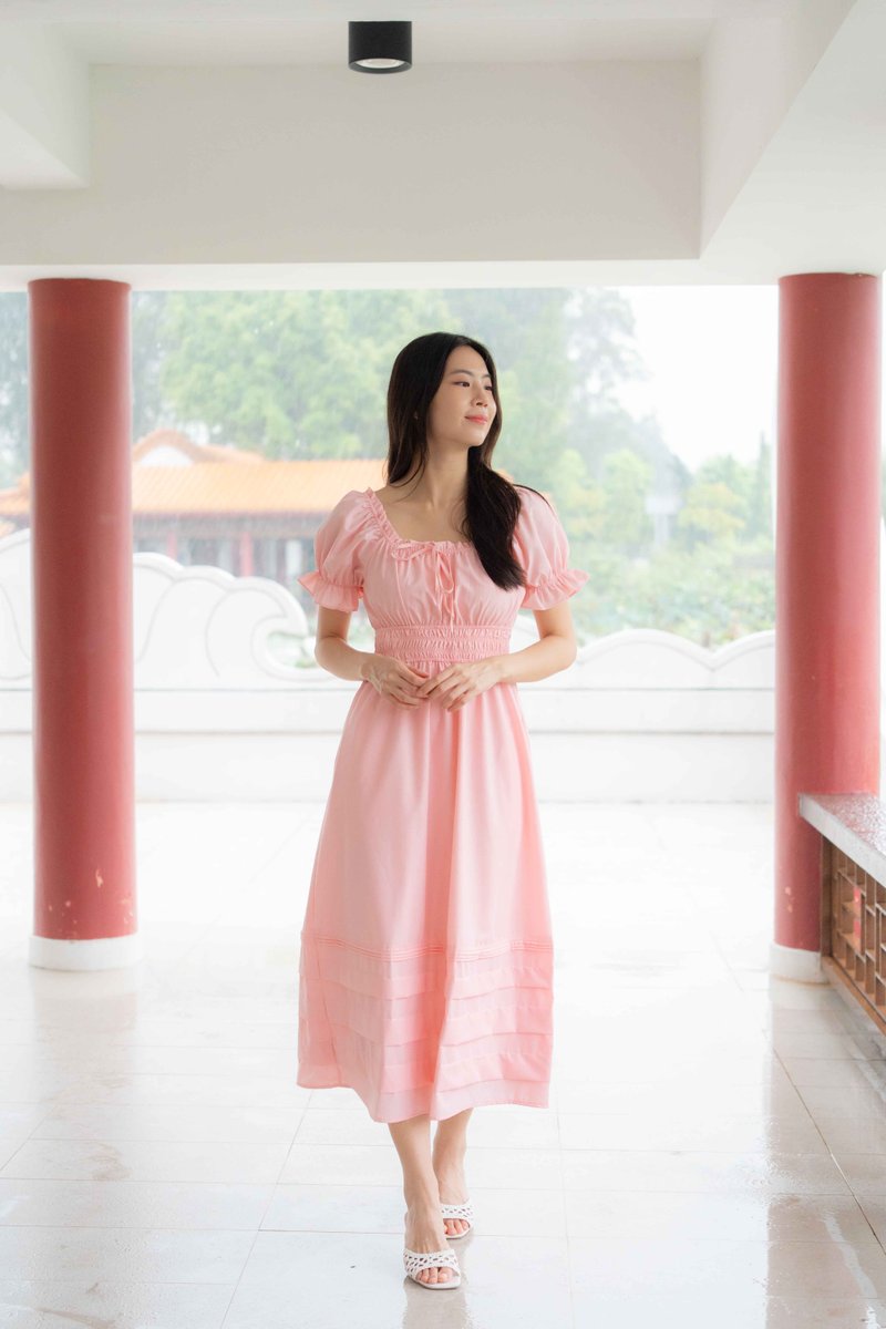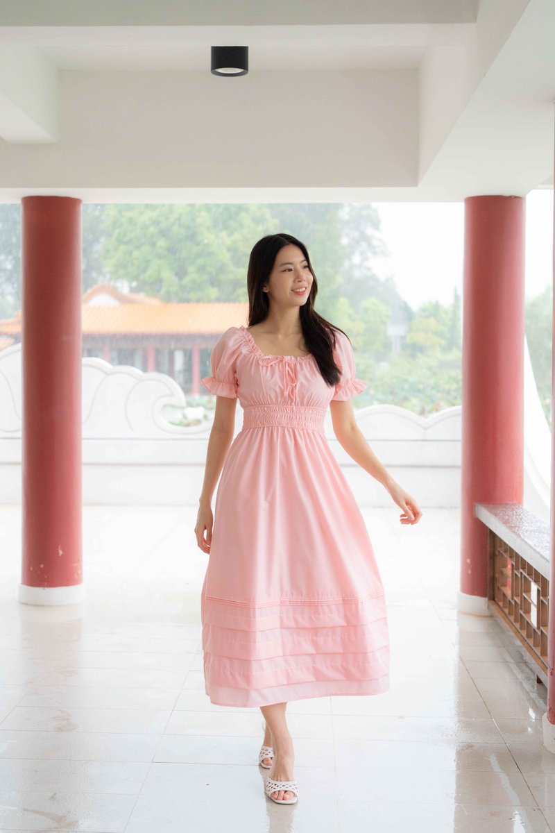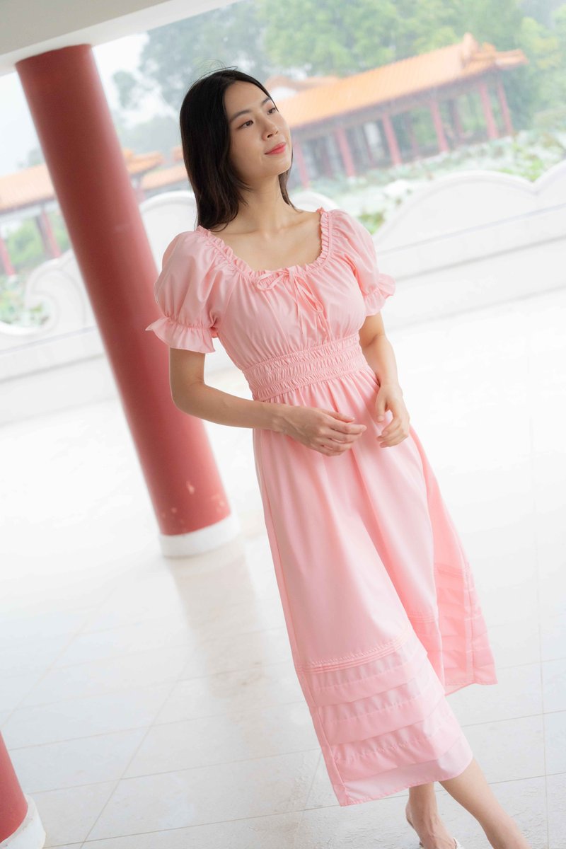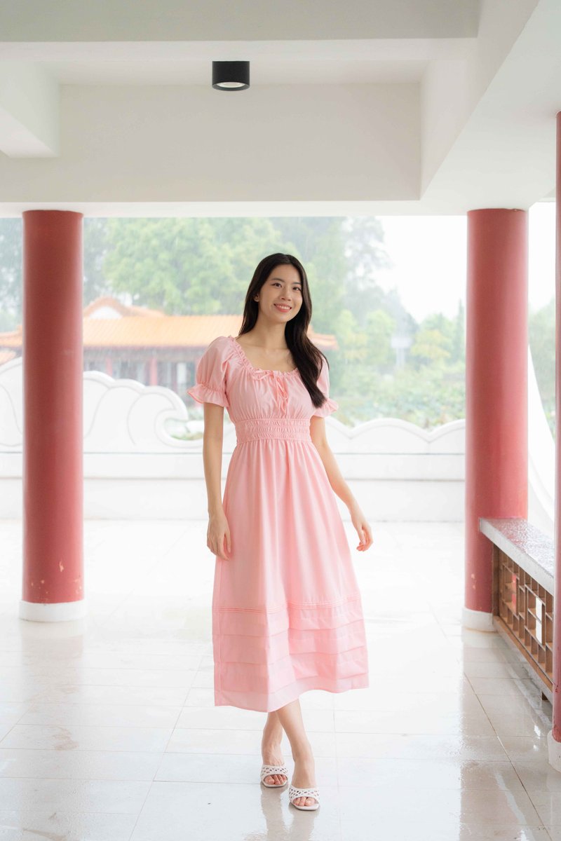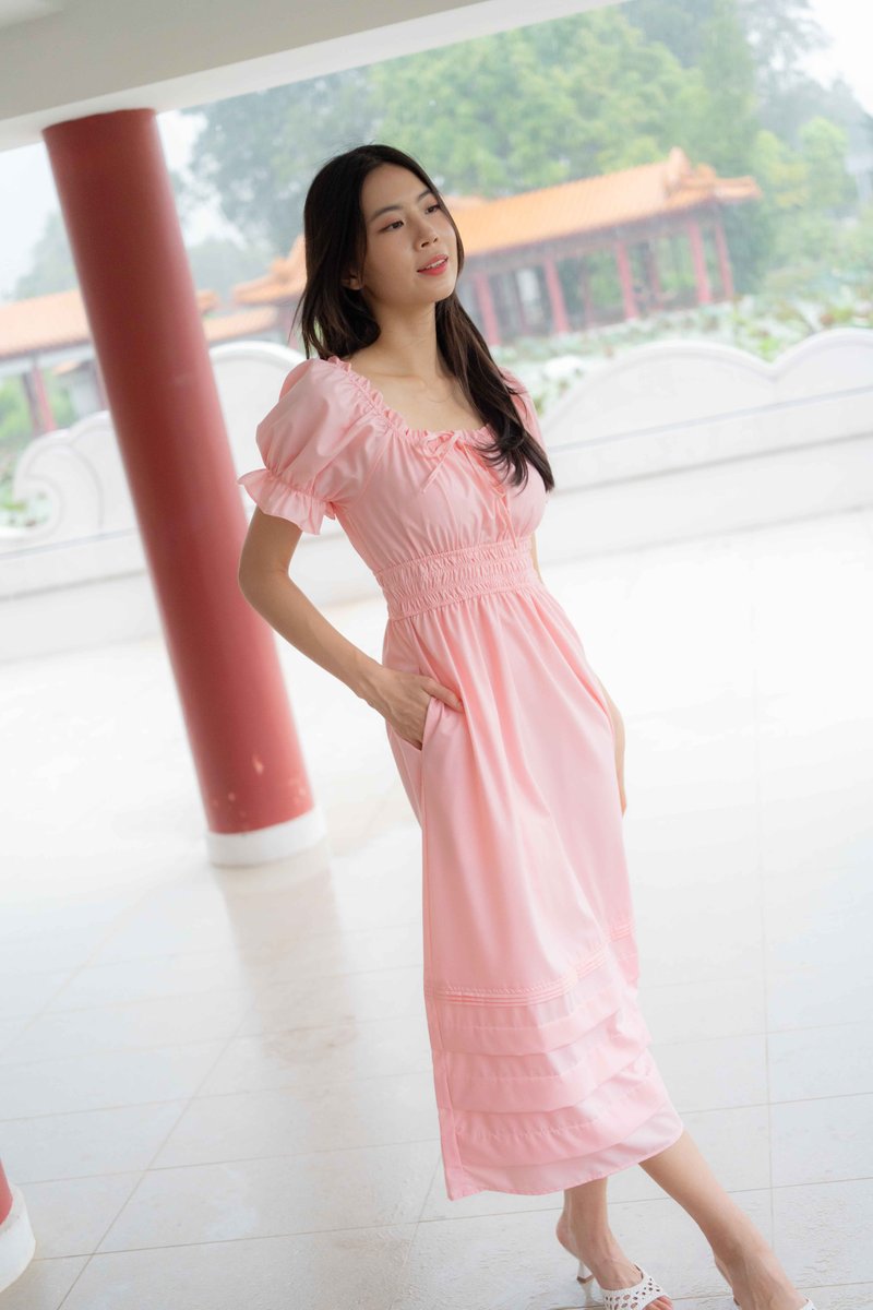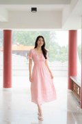 Juliana Frill Sleeves Waist Dress In Pink