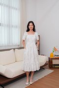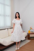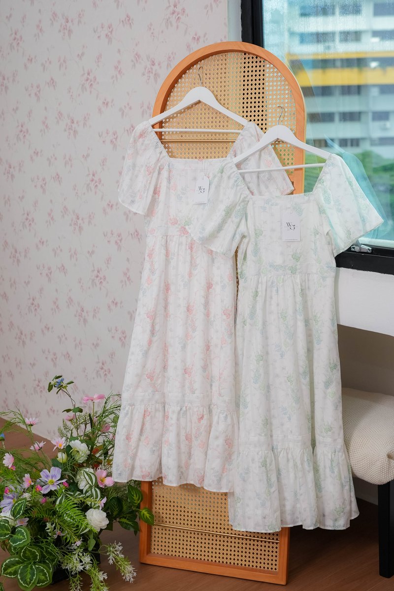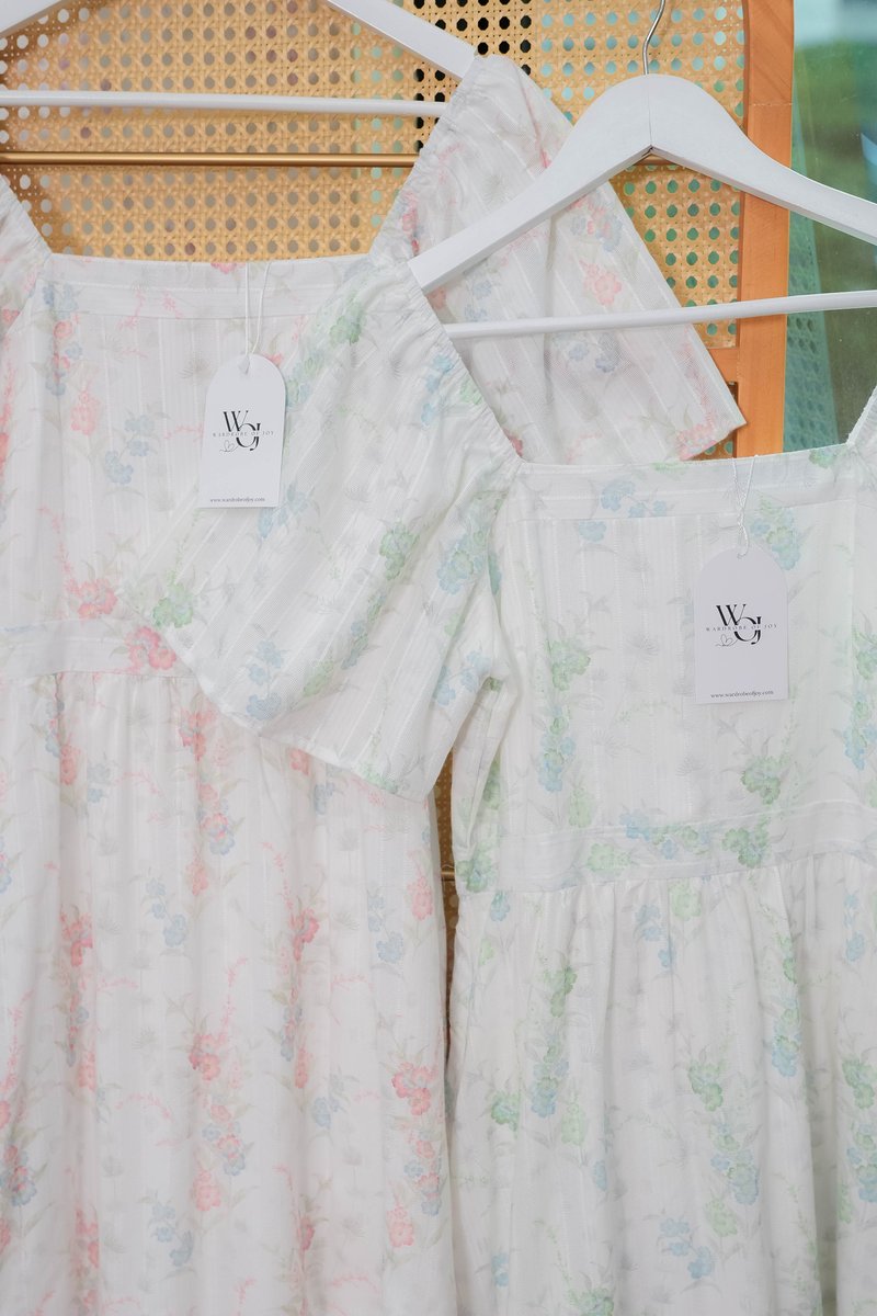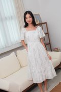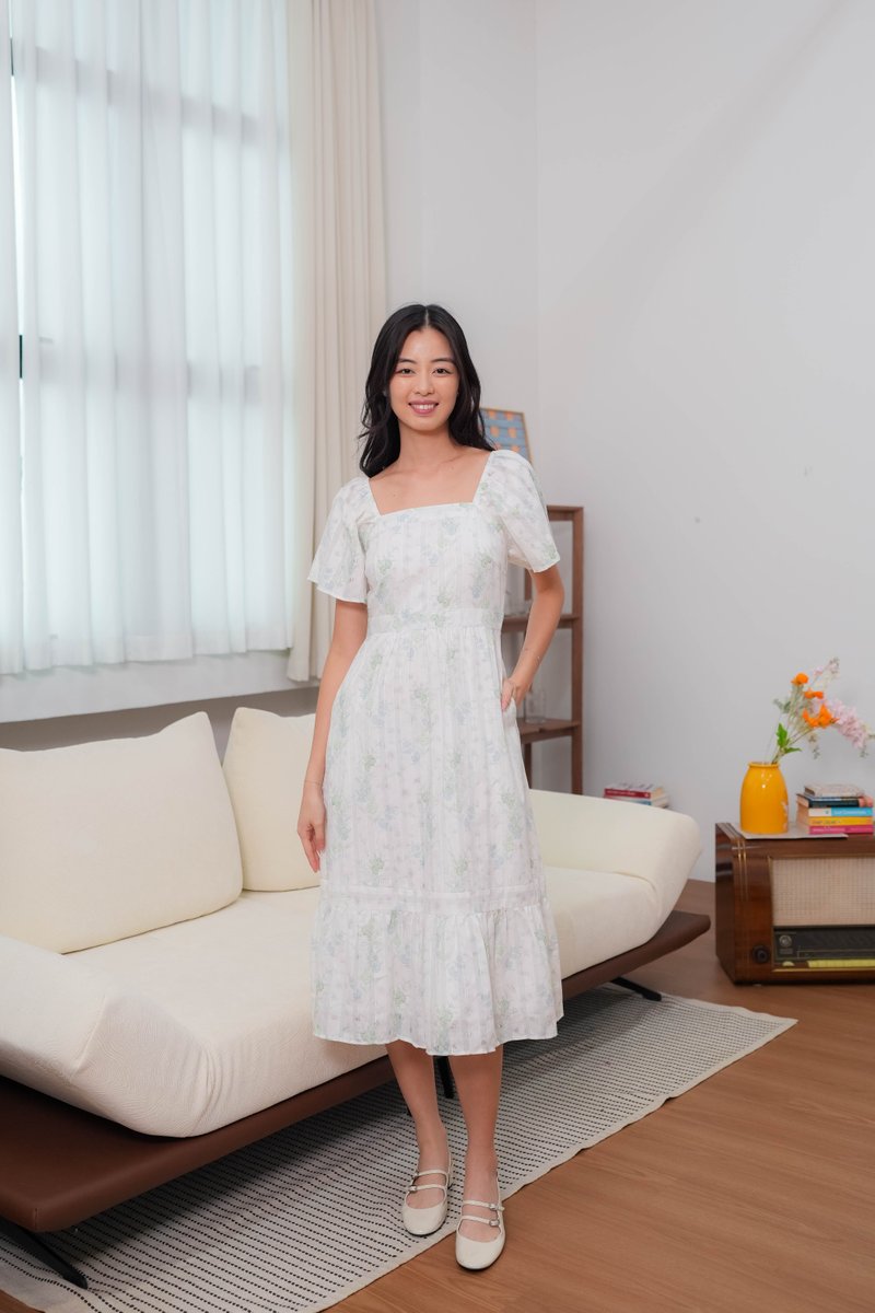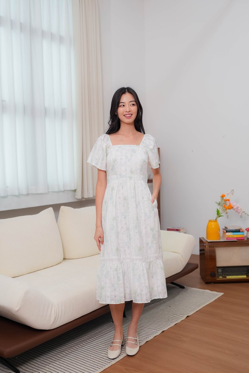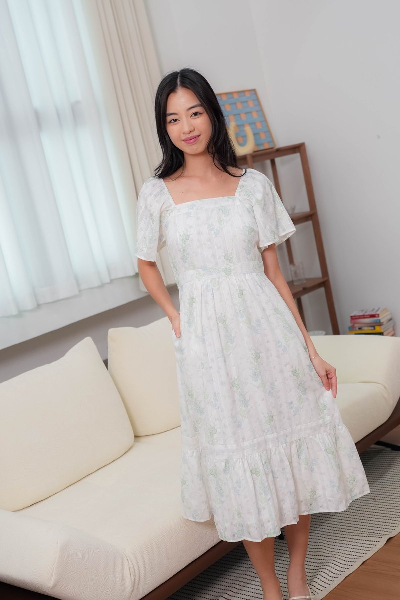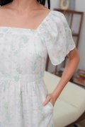Liliana Flutter Sleeve Floral Dress In Sage Green/Blue
