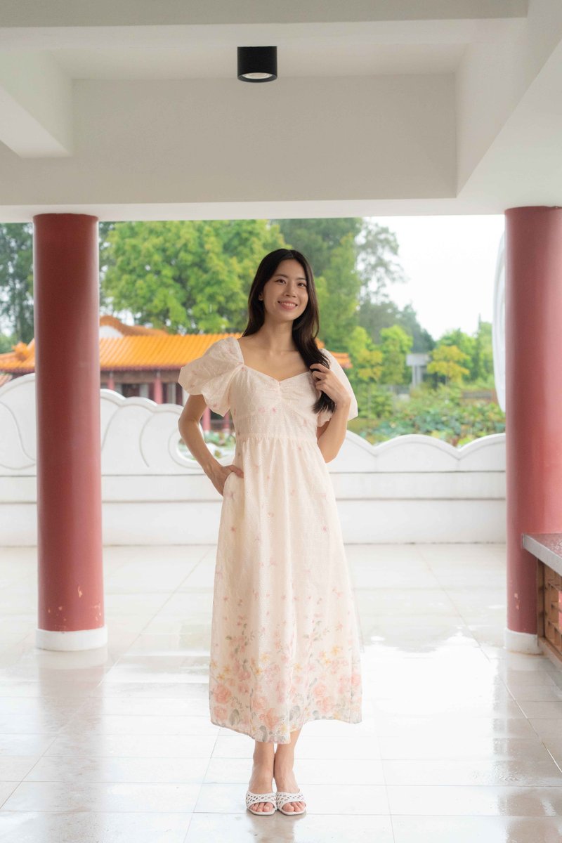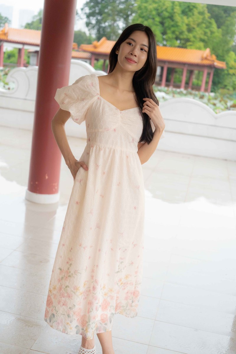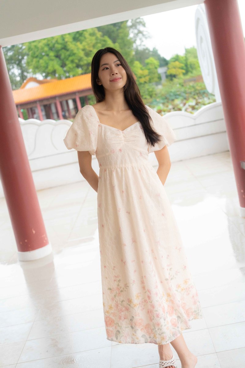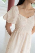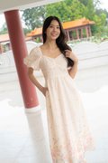 Madeleine Ruched Embroidery Dress In Cream