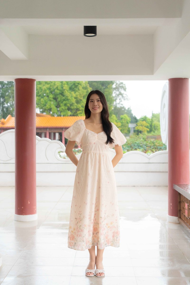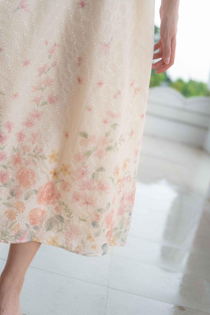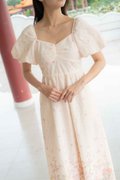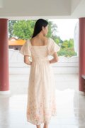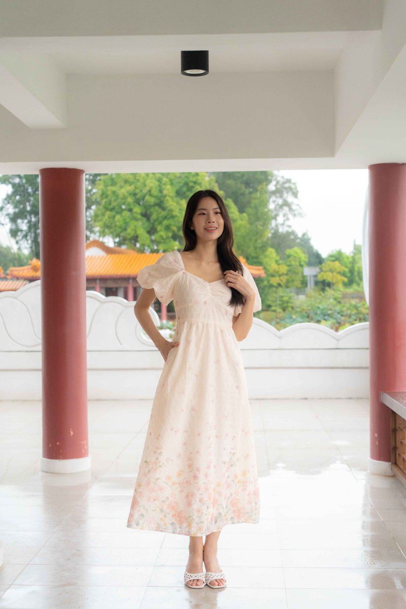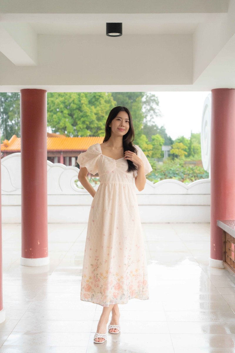Madeleine Ruched Embroidery Dress In Cream