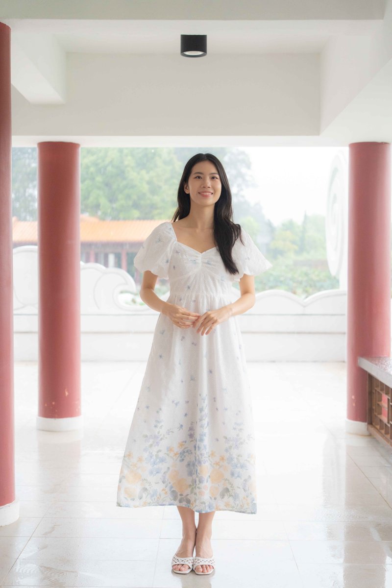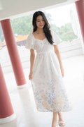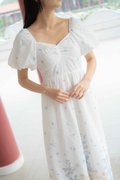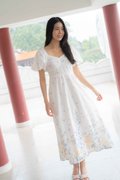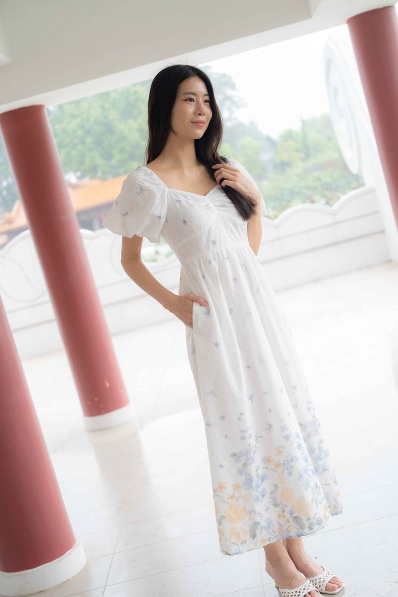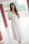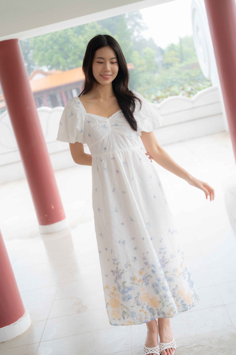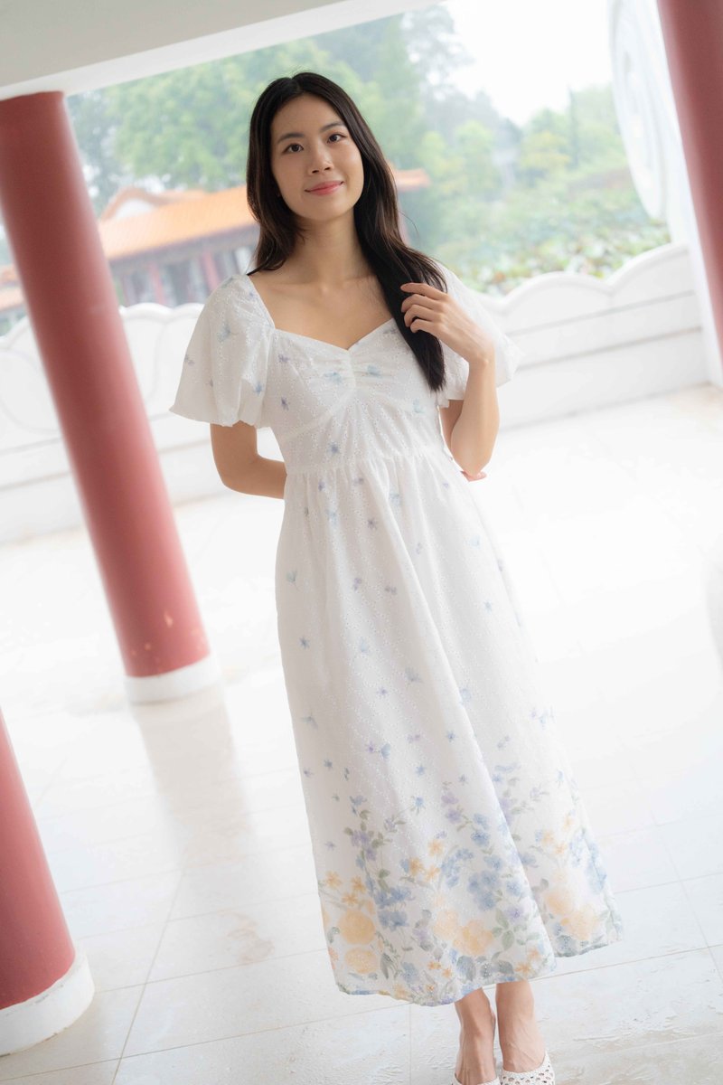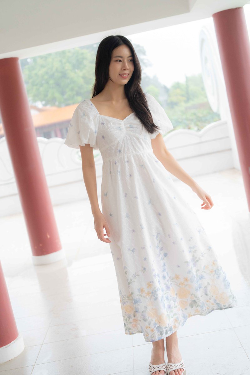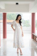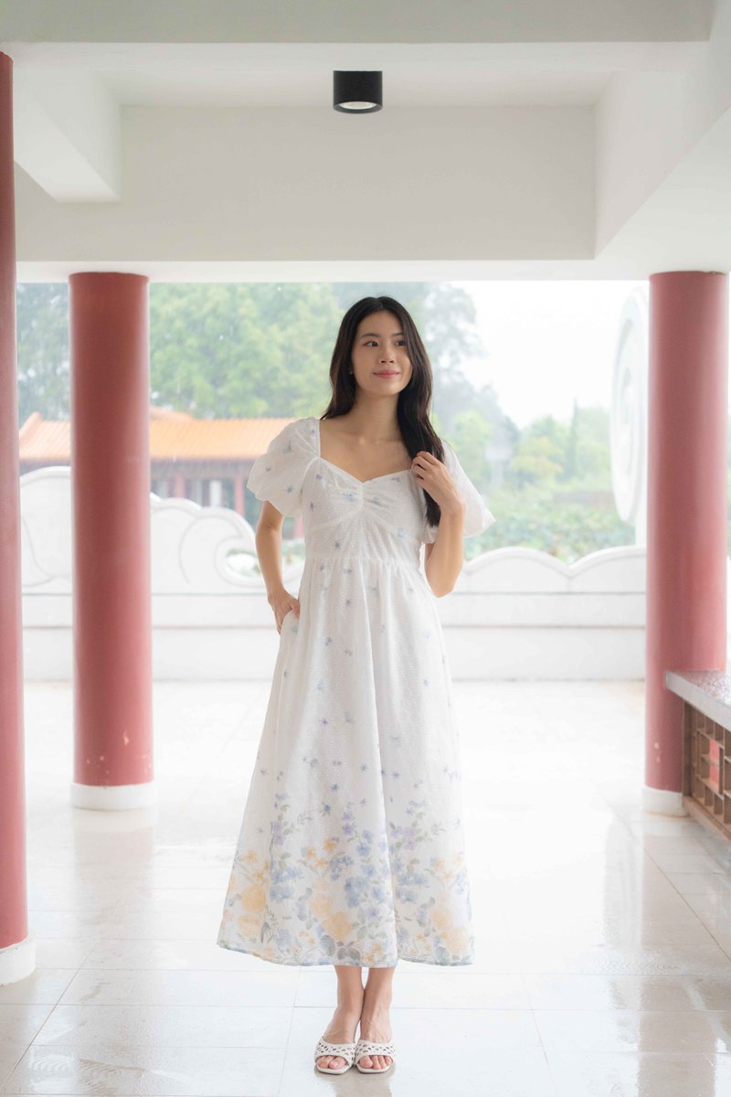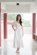 Madeleine Ruched Embroidery Dress In White