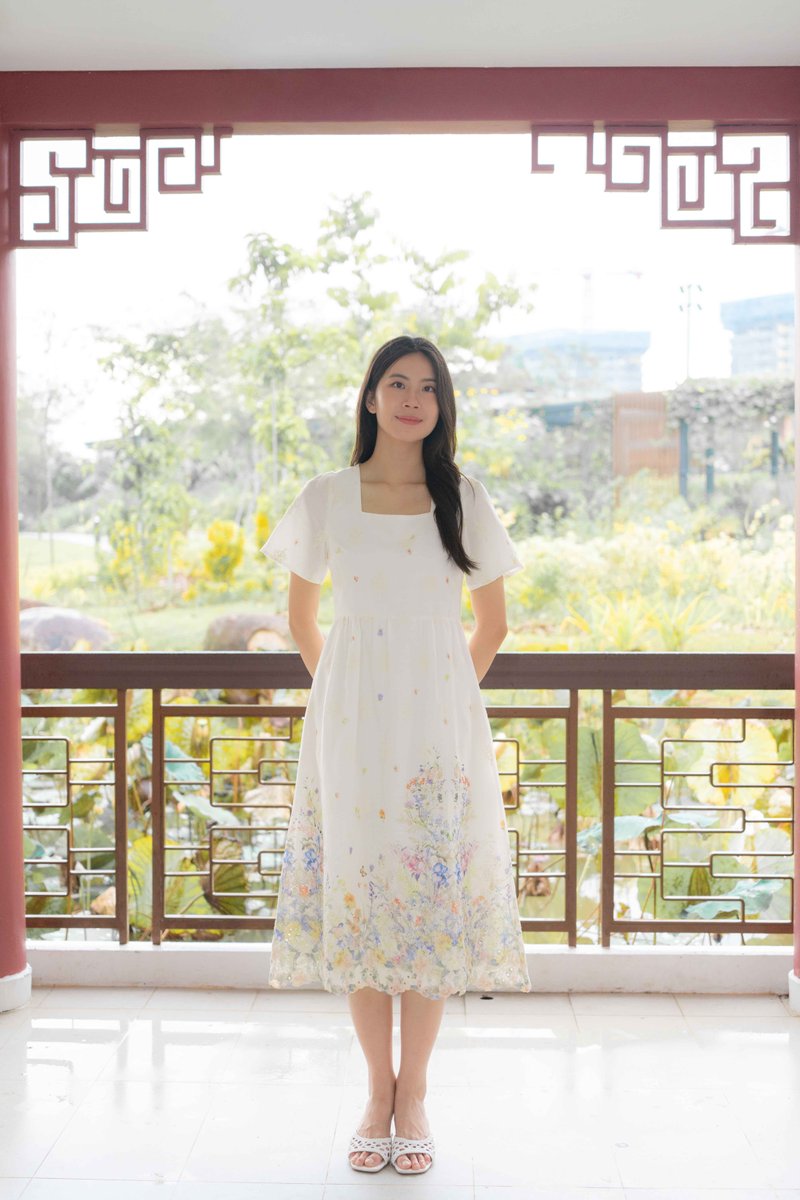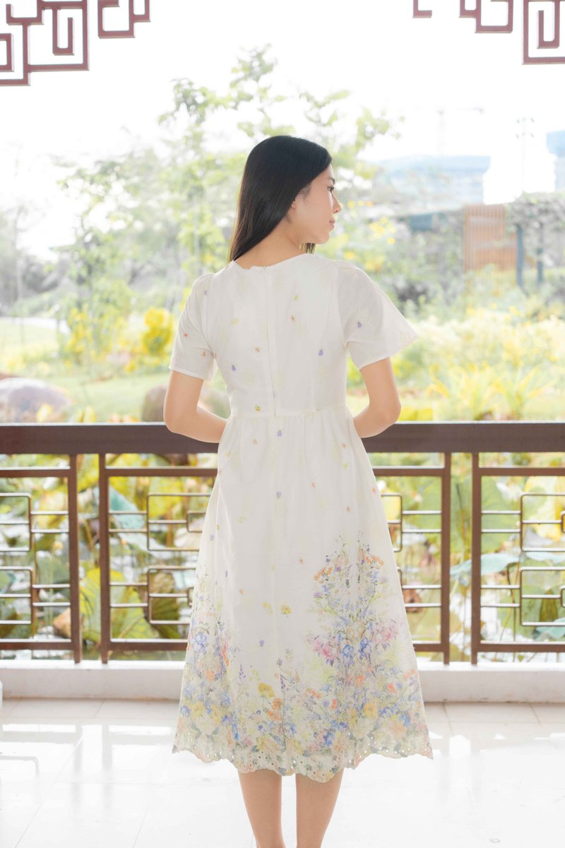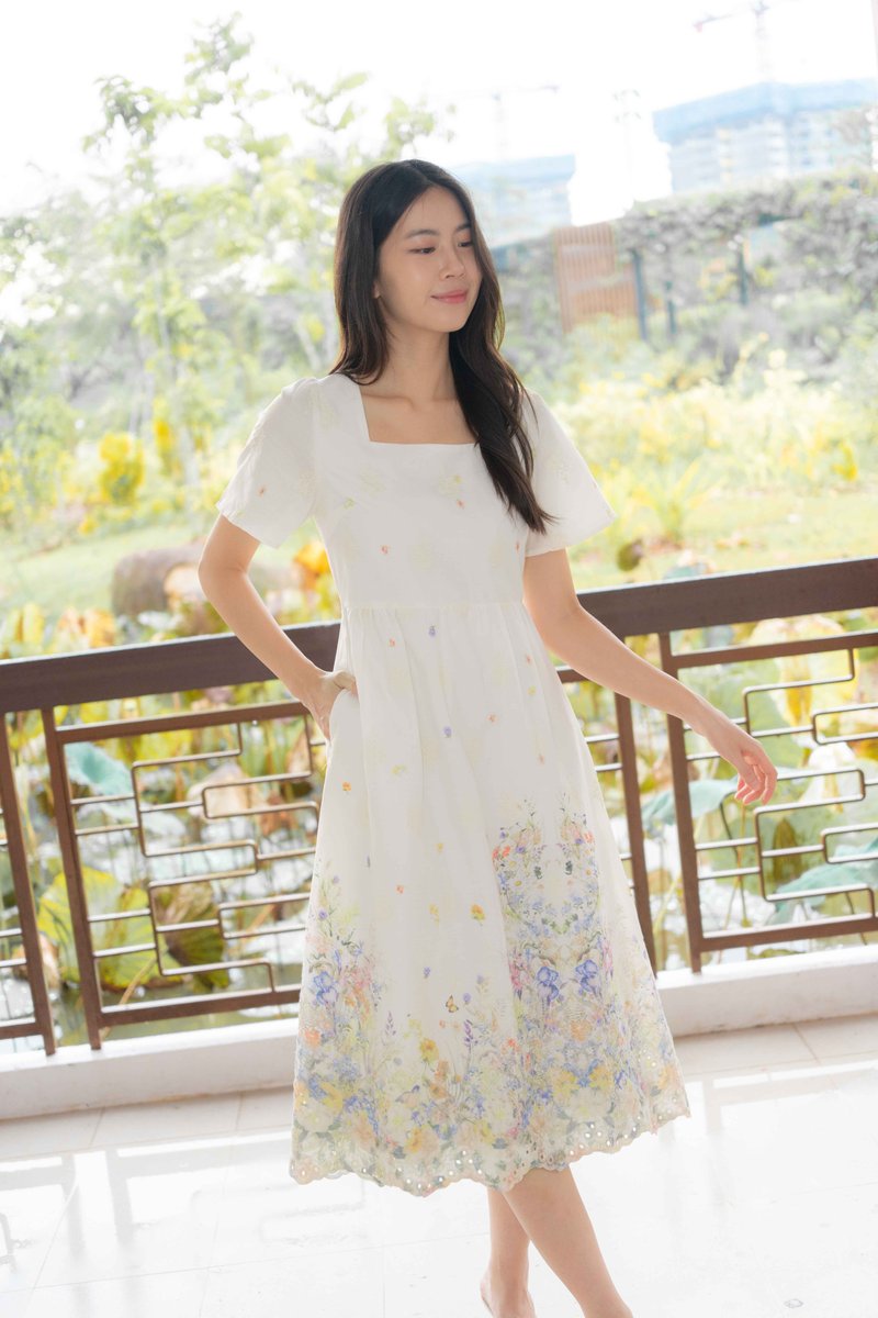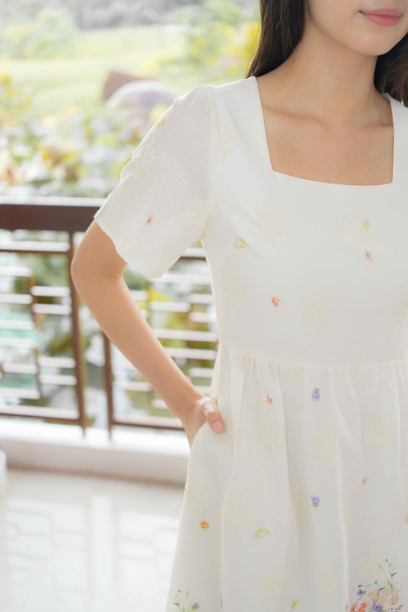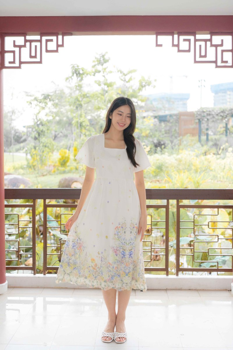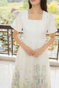 Marielle Garden Flutter Sleeves Dress In Cream