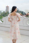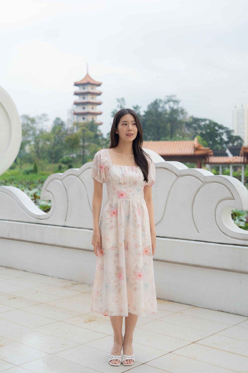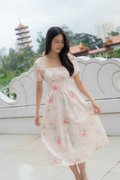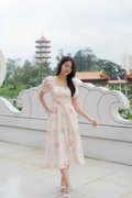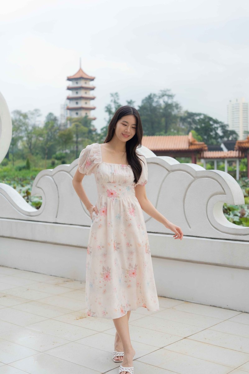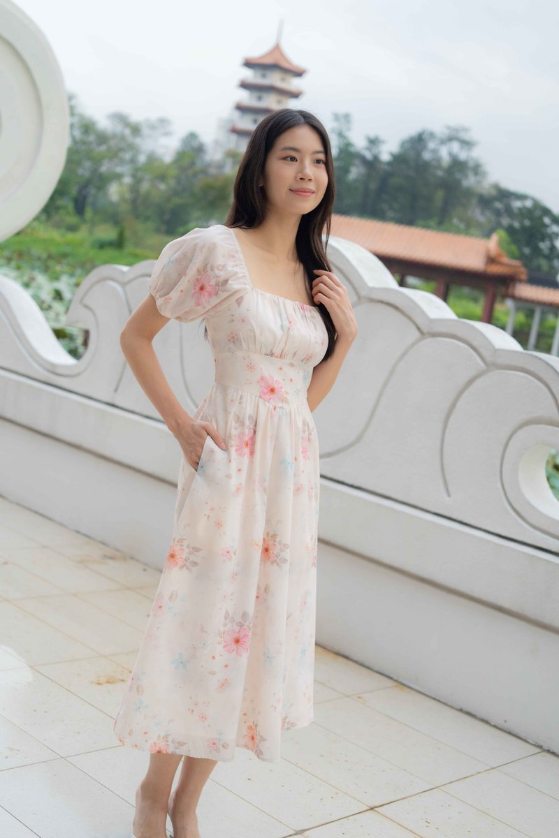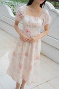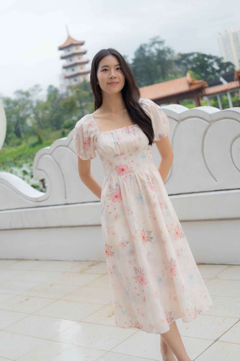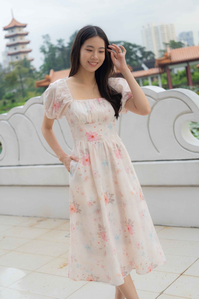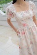 Maya Ruched Sleeves Dress In Pink Floral