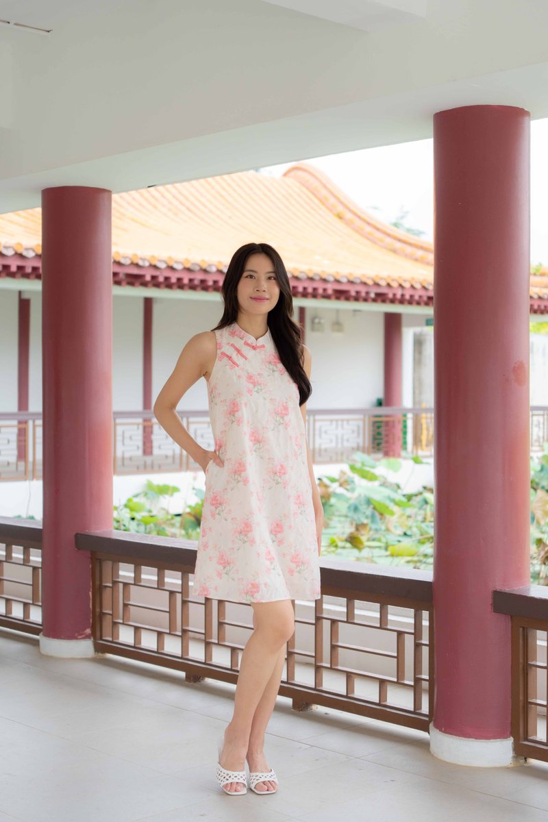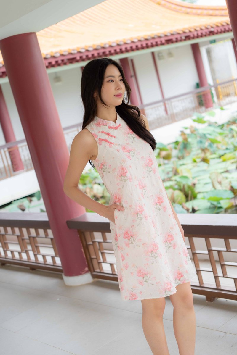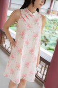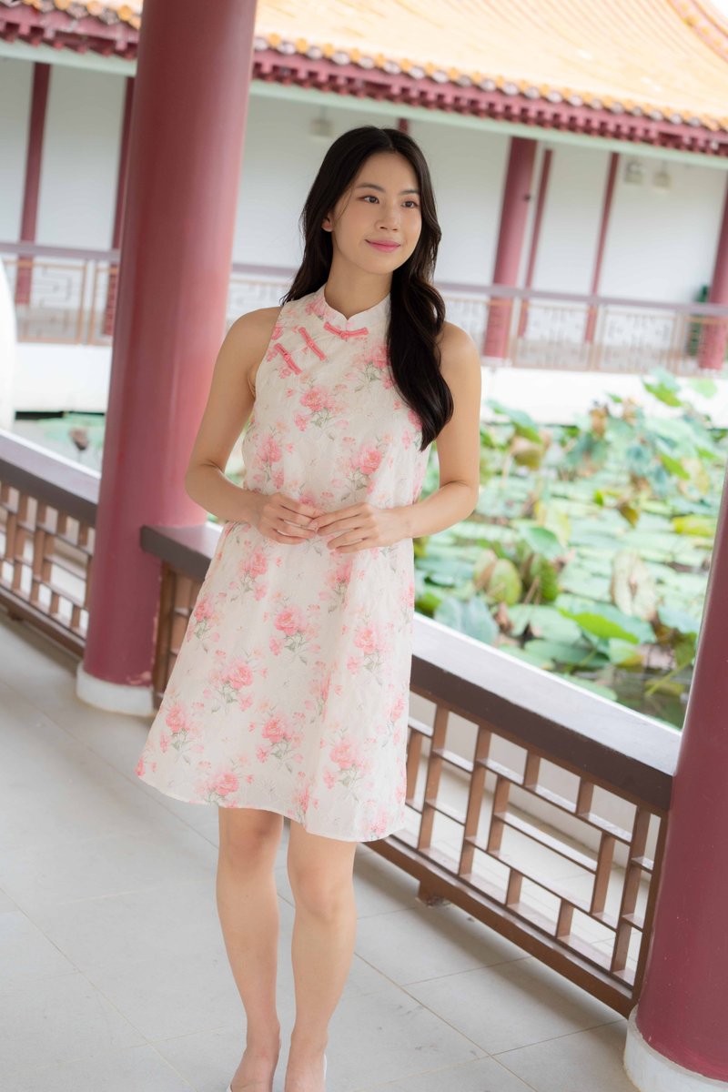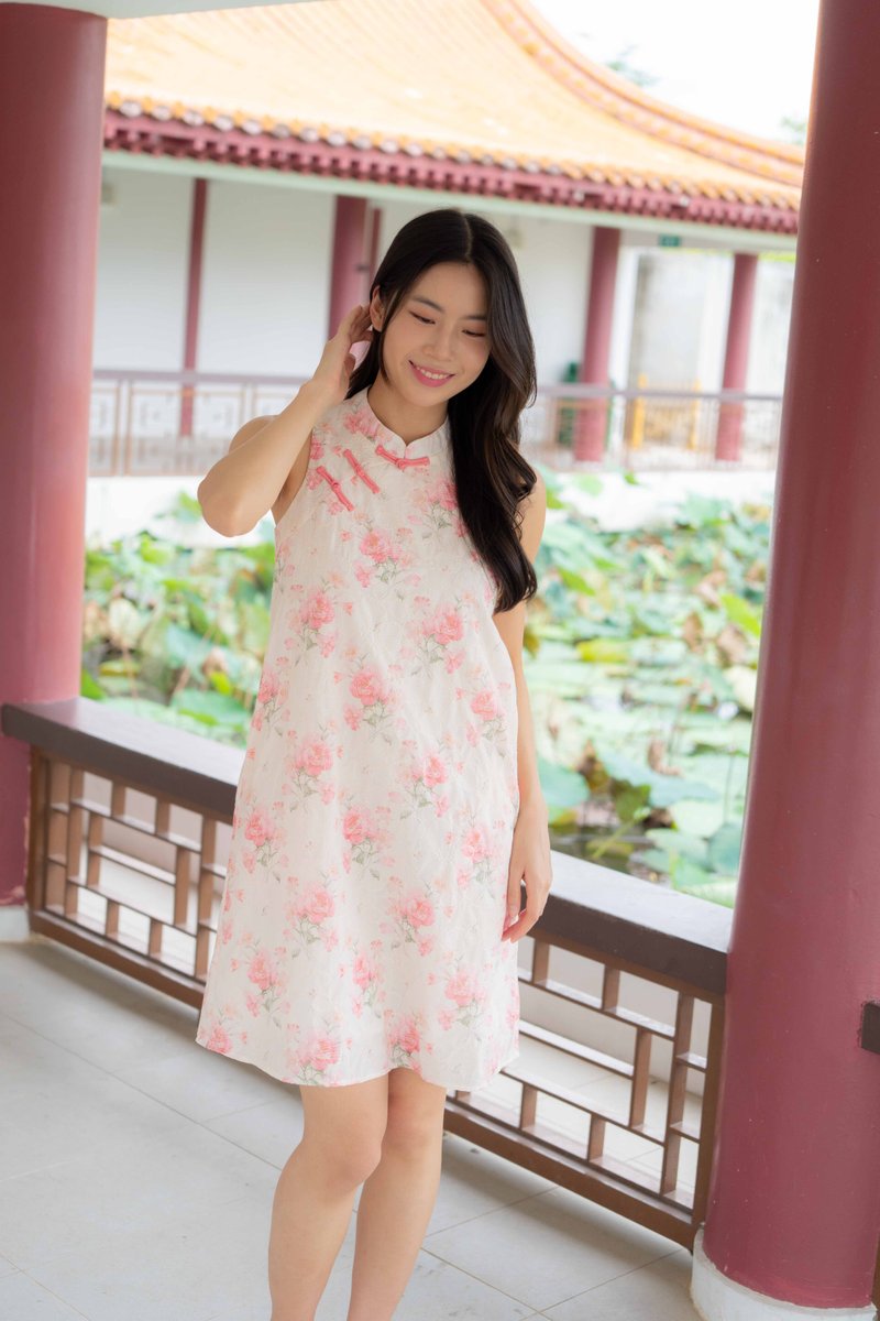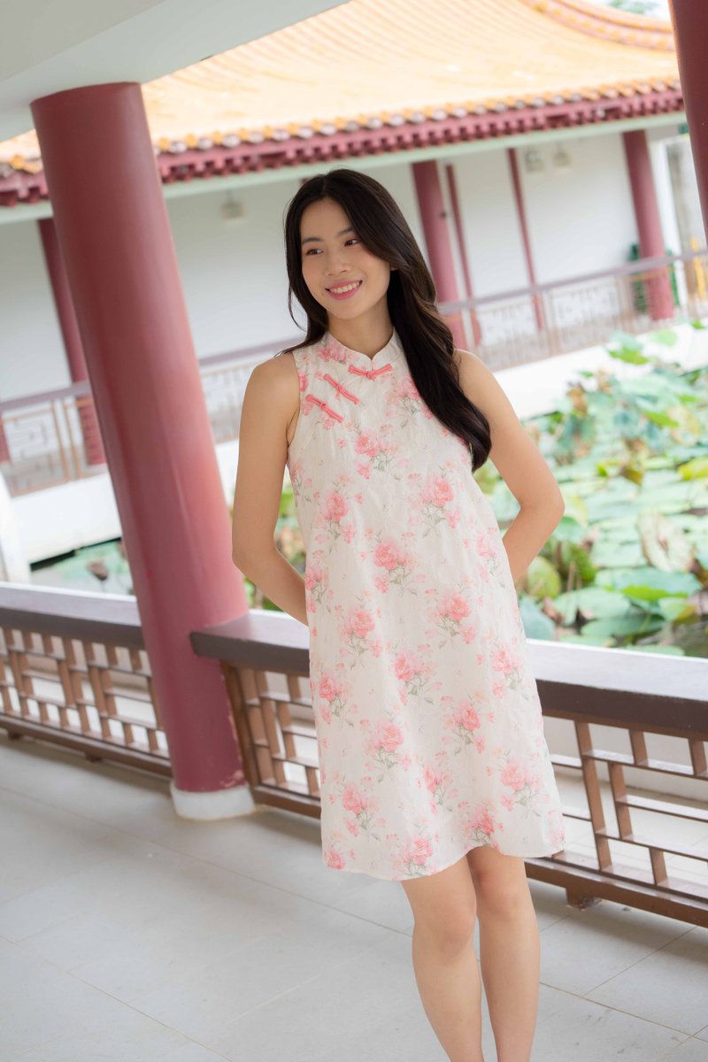 Peony Floral Embroidery Cheongsam In Rose Pink