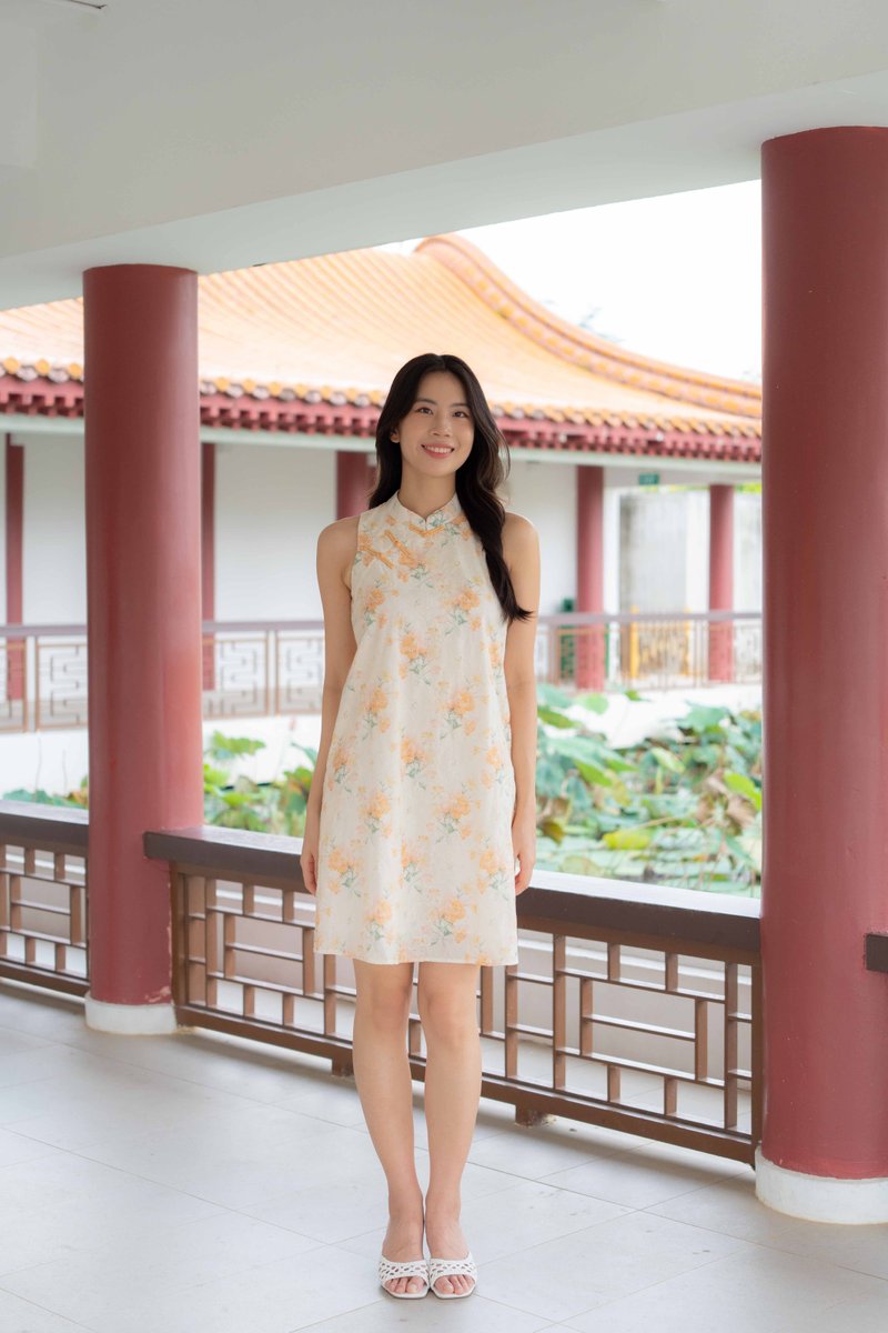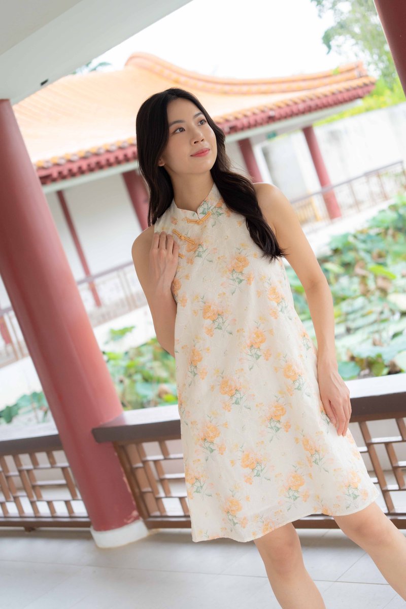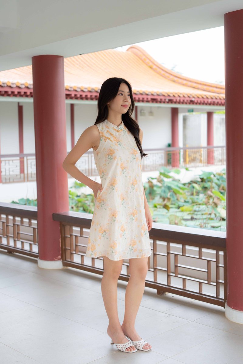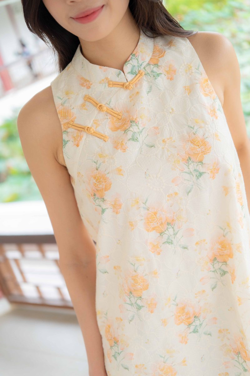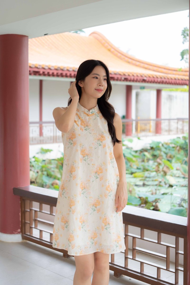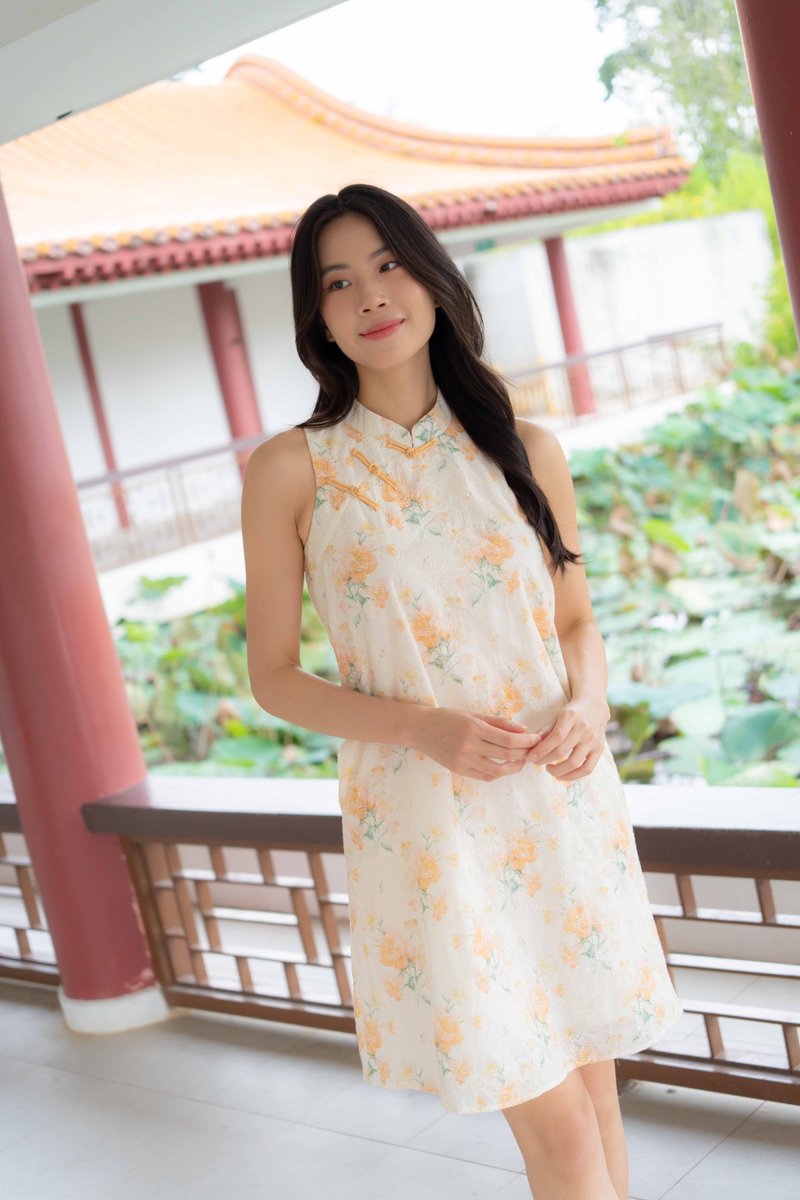 Peony Floral Embroidery Cheongsam In Yellow