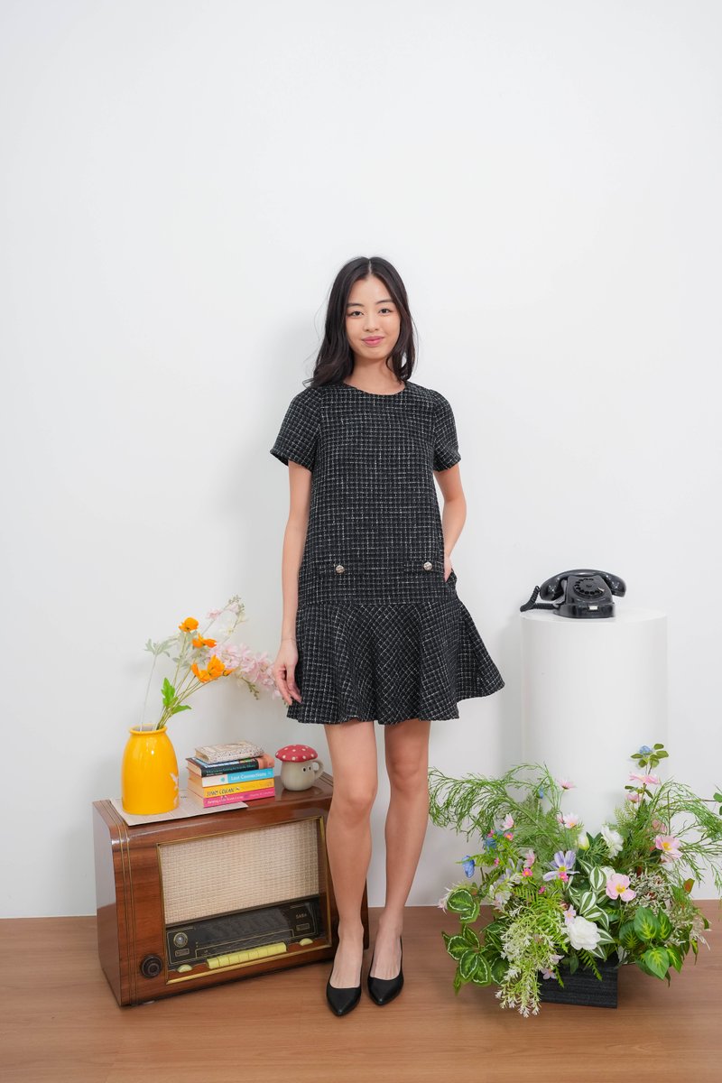 [PRE-LAUNCH] Gabrielle Tweed Sleeve Dress In Black