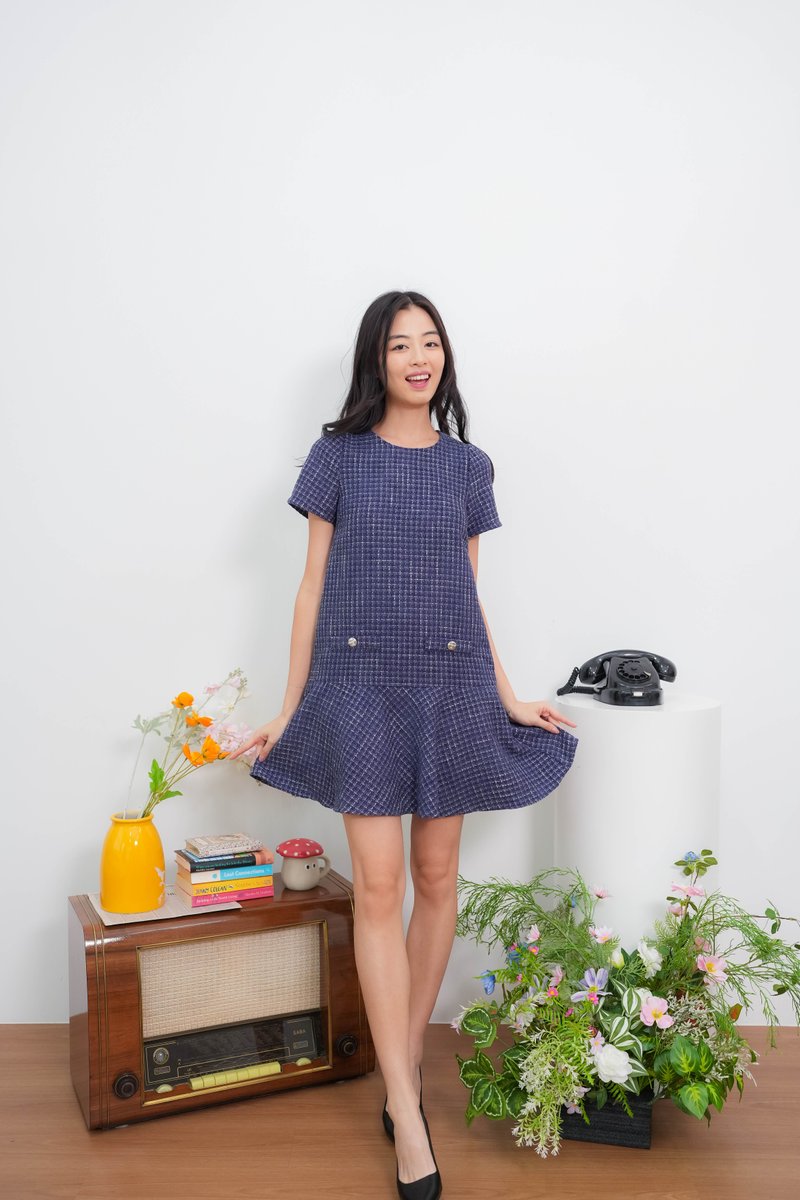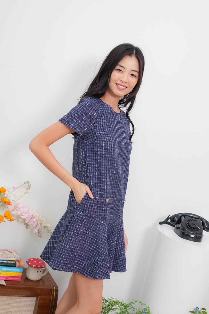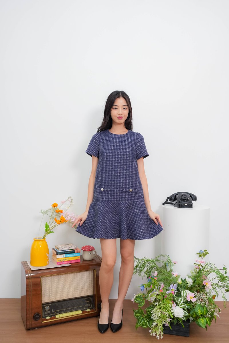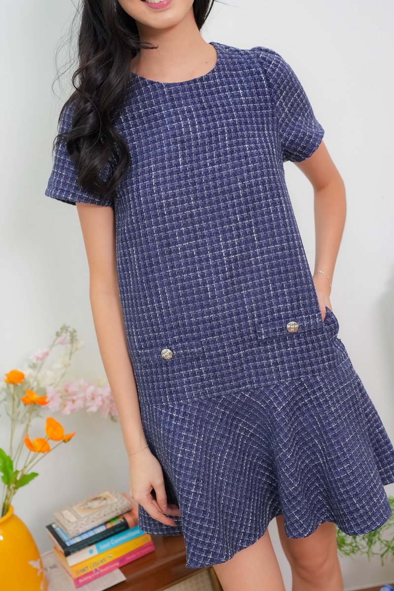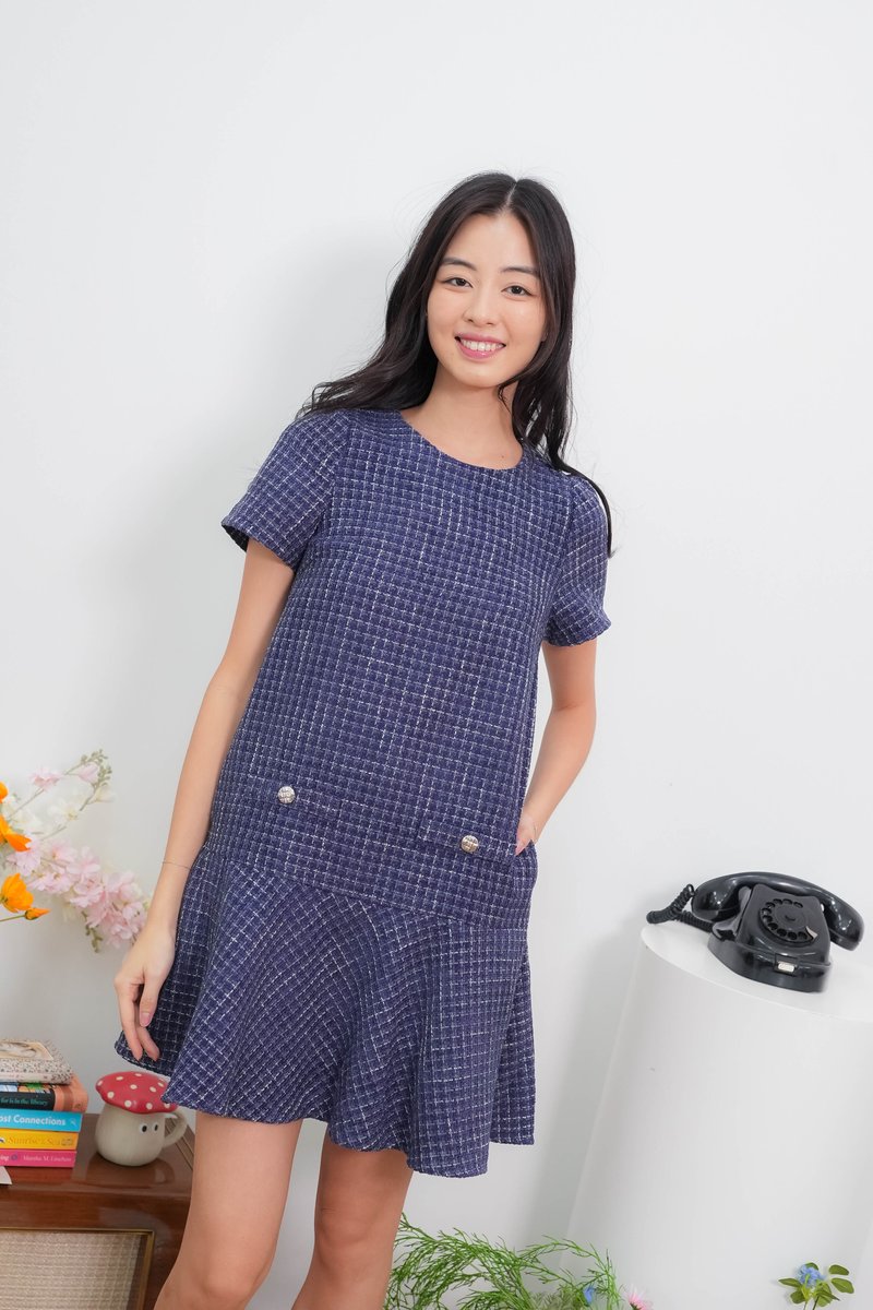 [PRE-LAUNCH] Gabrielle Tweed Sleeve Dress In Navy