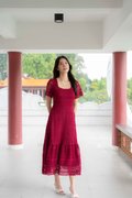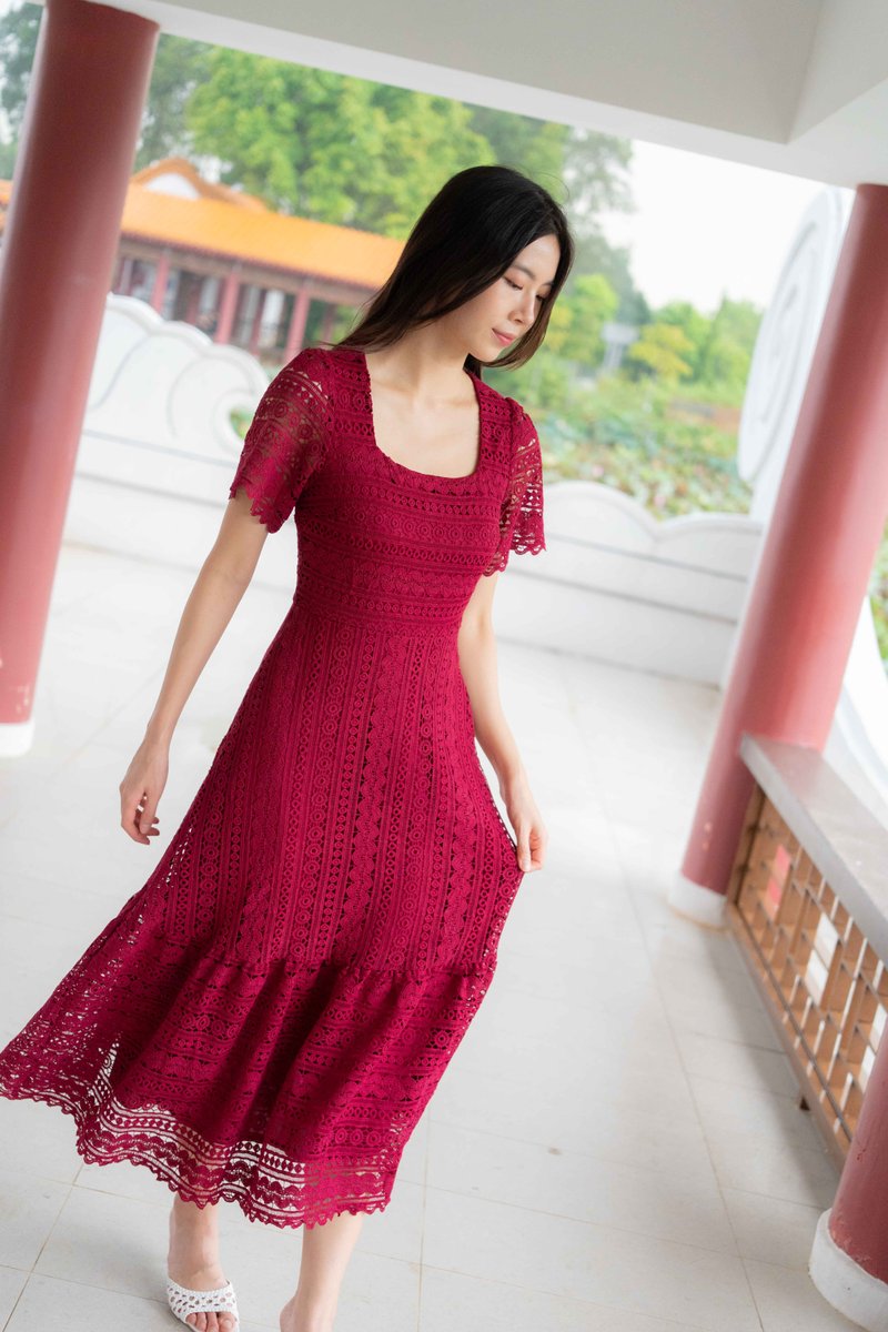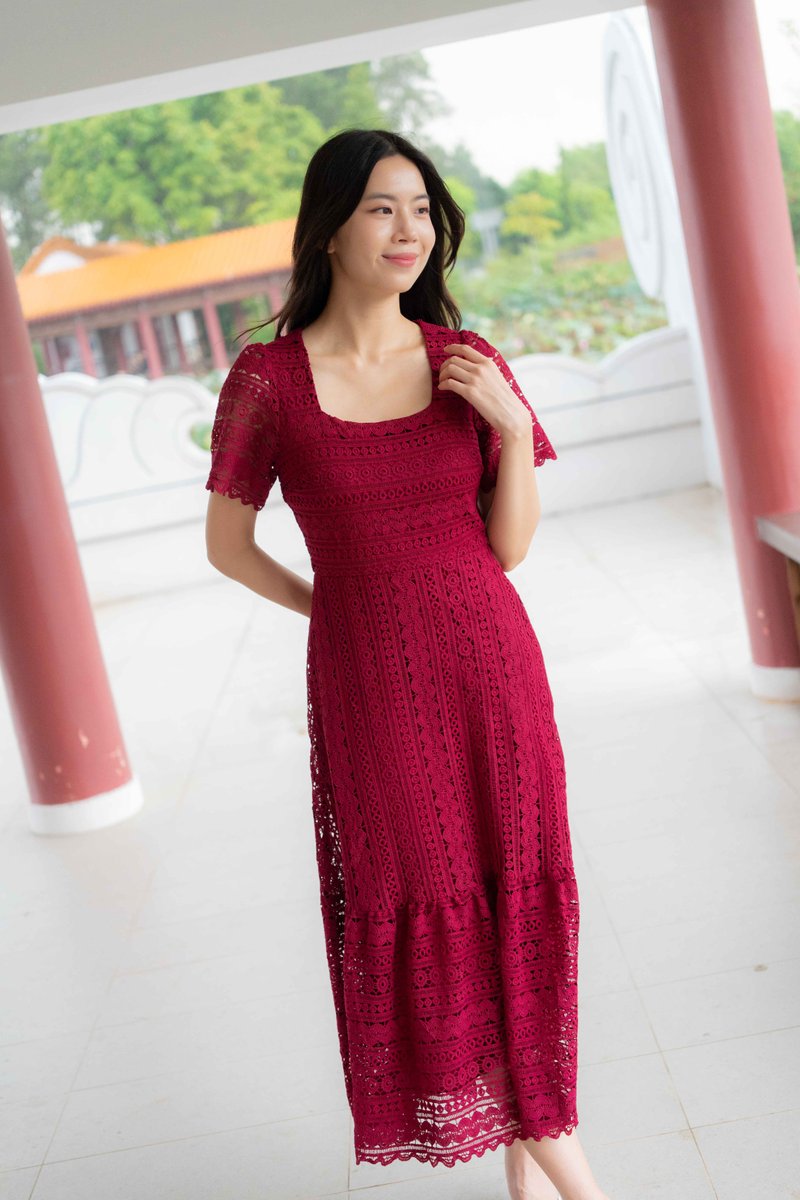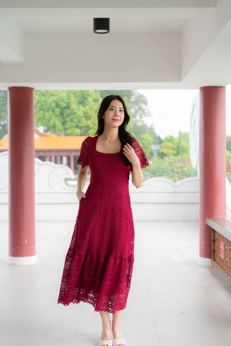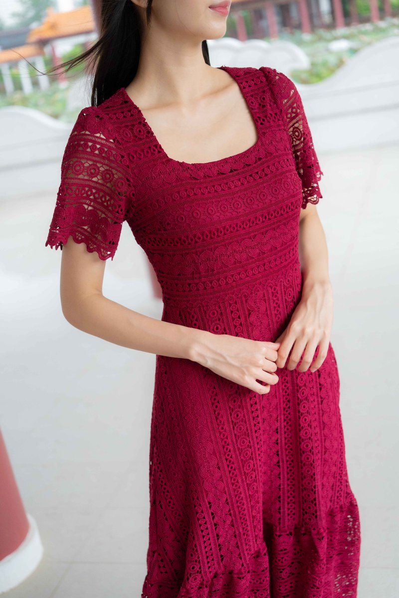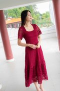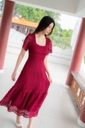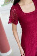 *PREMIUM* Amelie Crochet Sleeve Dress In Wine Red