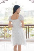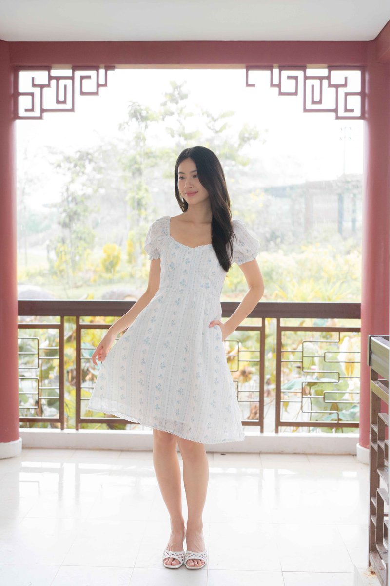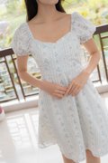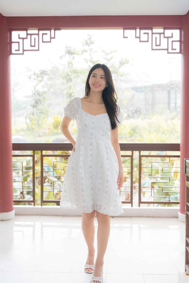 Rosette Floral Prints Dress In Blue