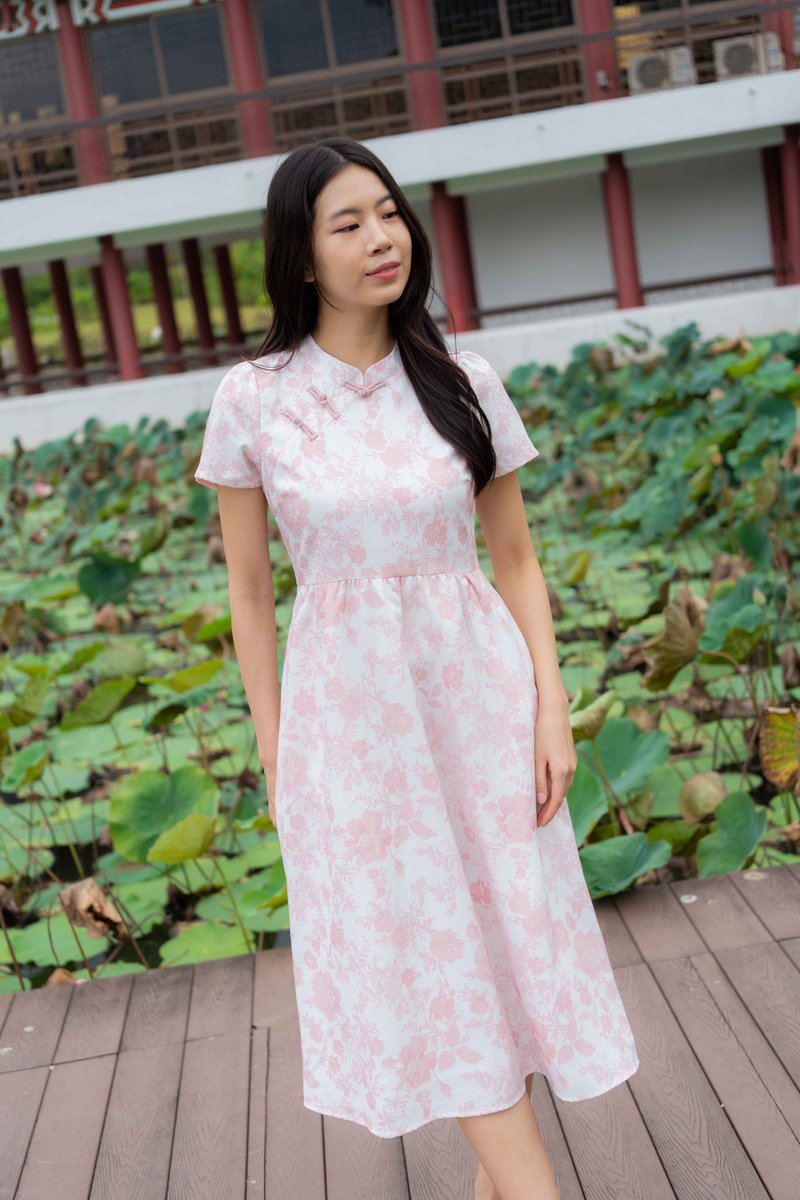 Seraphina Porcelain Sleeve Cheongsam In Pink