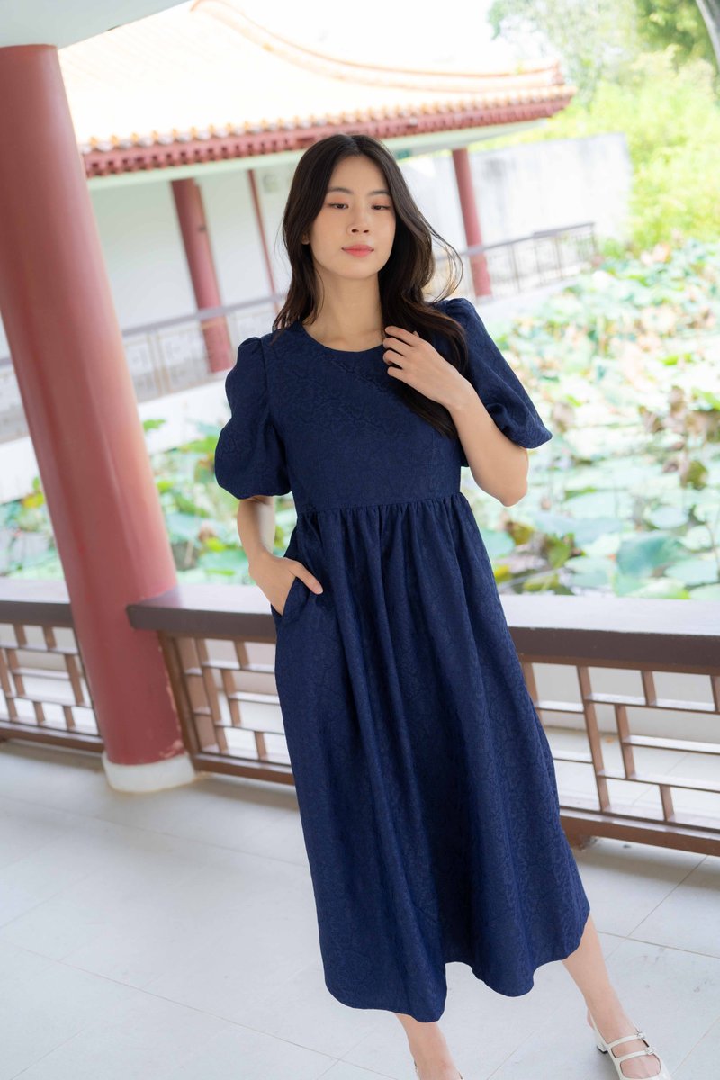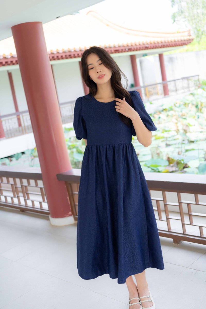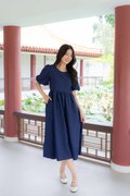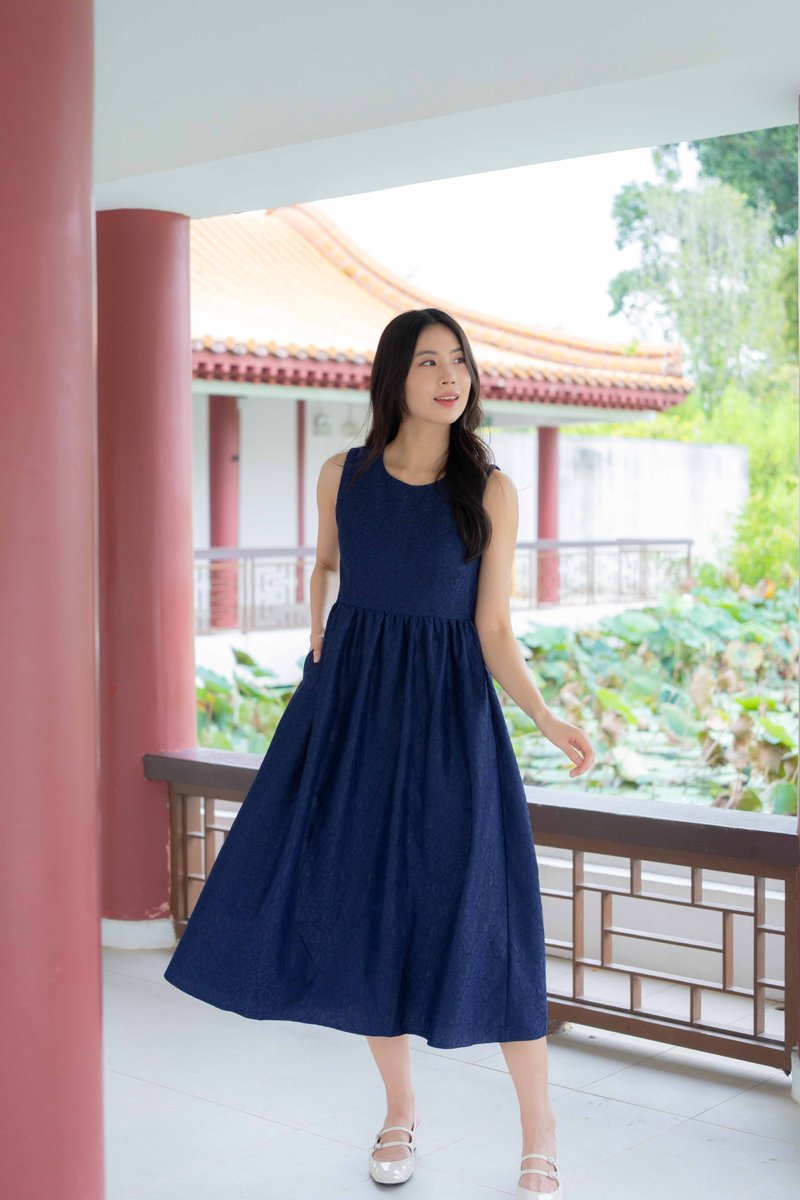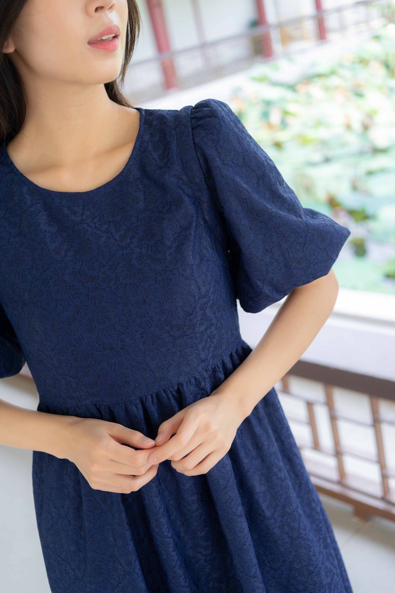 Seraphine Detachable Sleeves Lace Dress In Navy