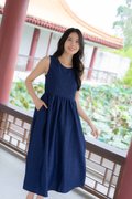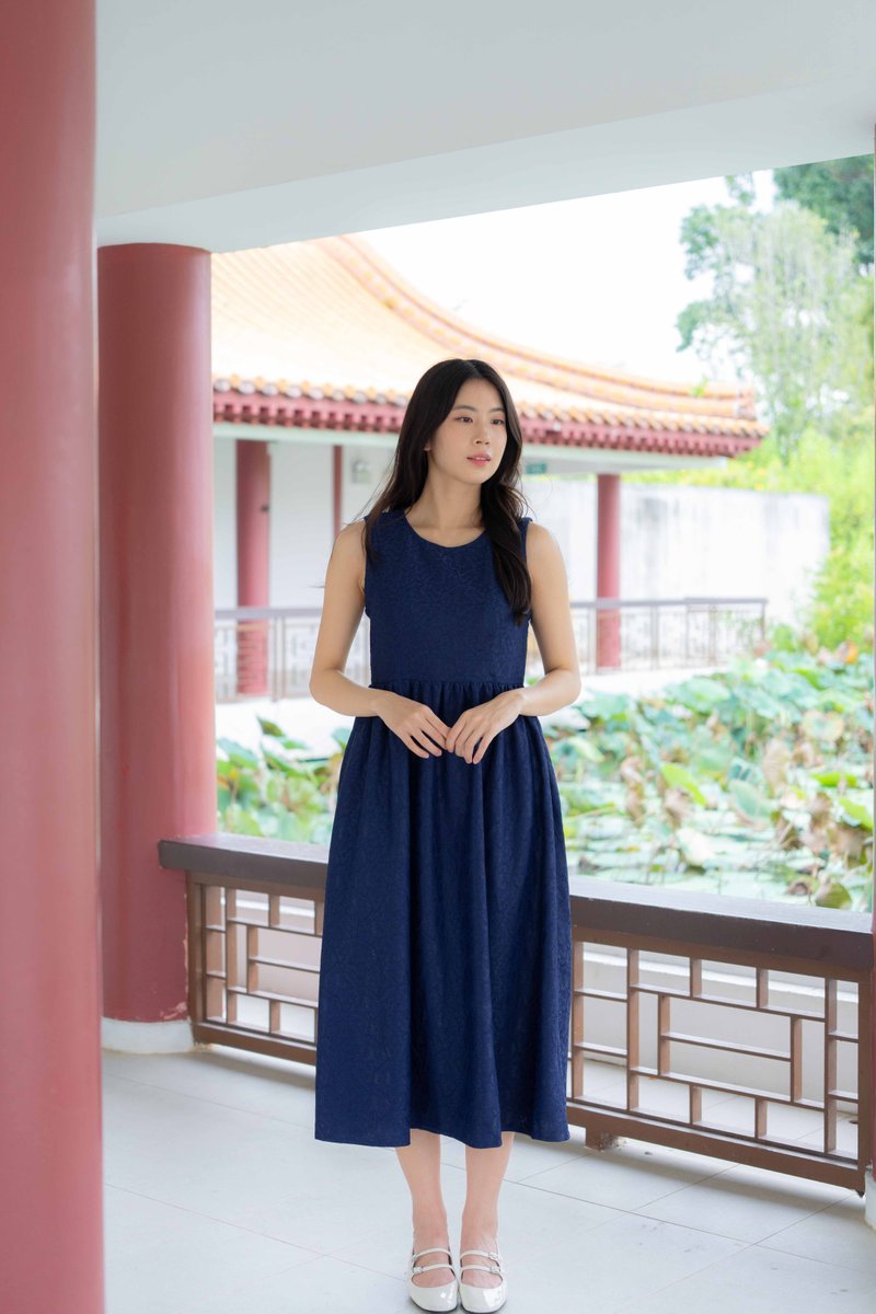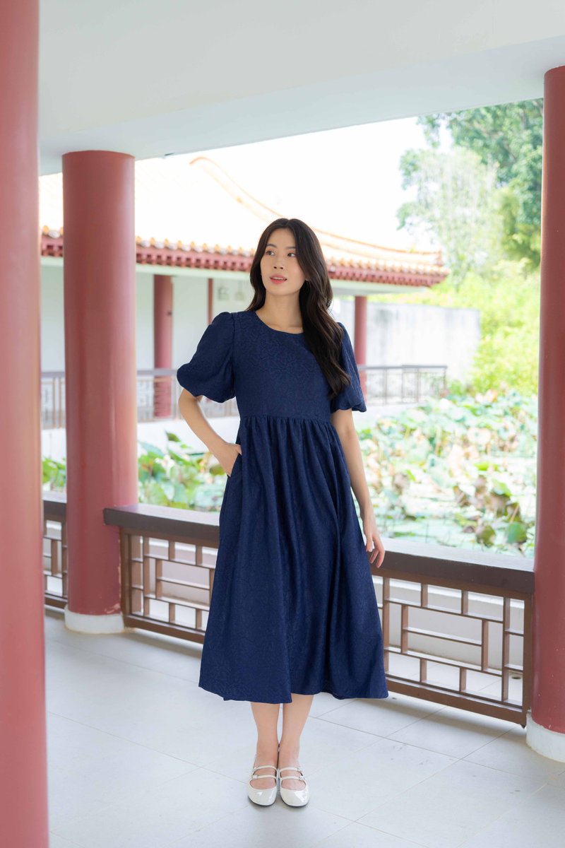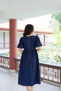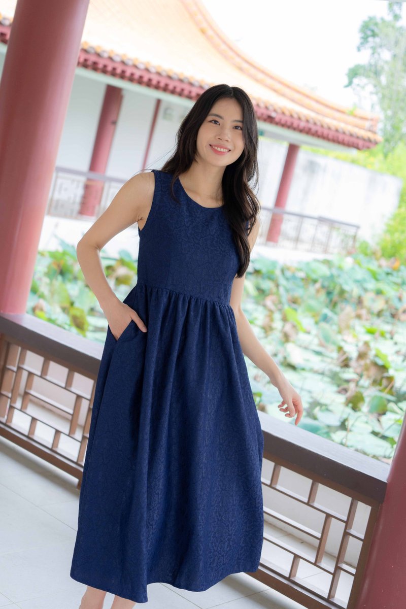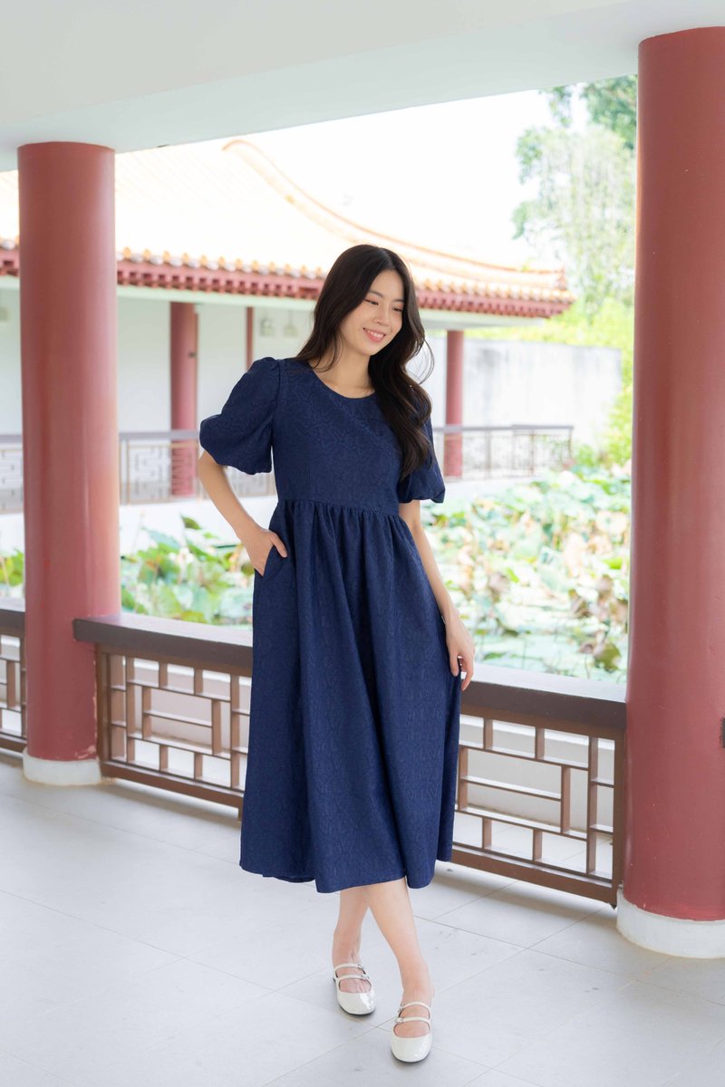 Seraphine Detachable Sleeves Lace Dress In Navy