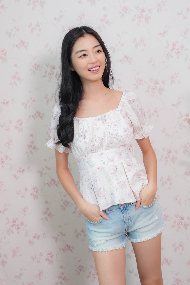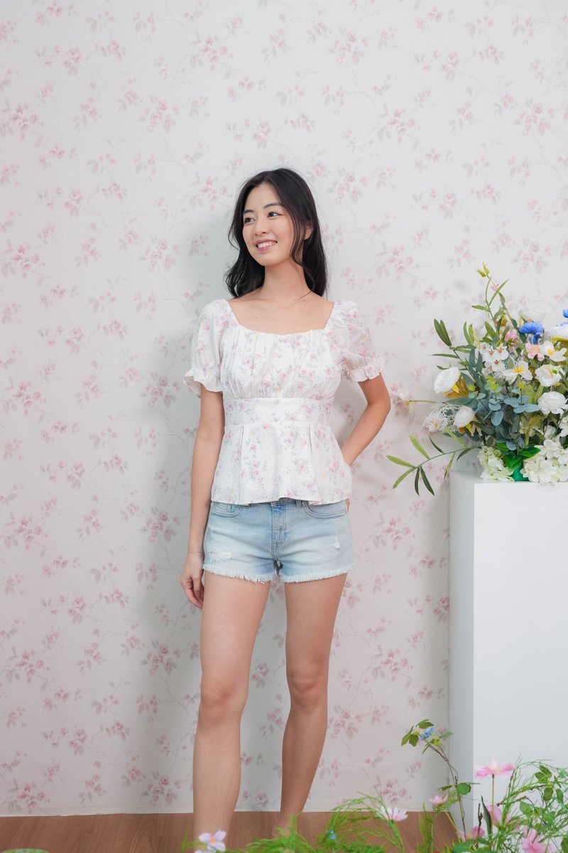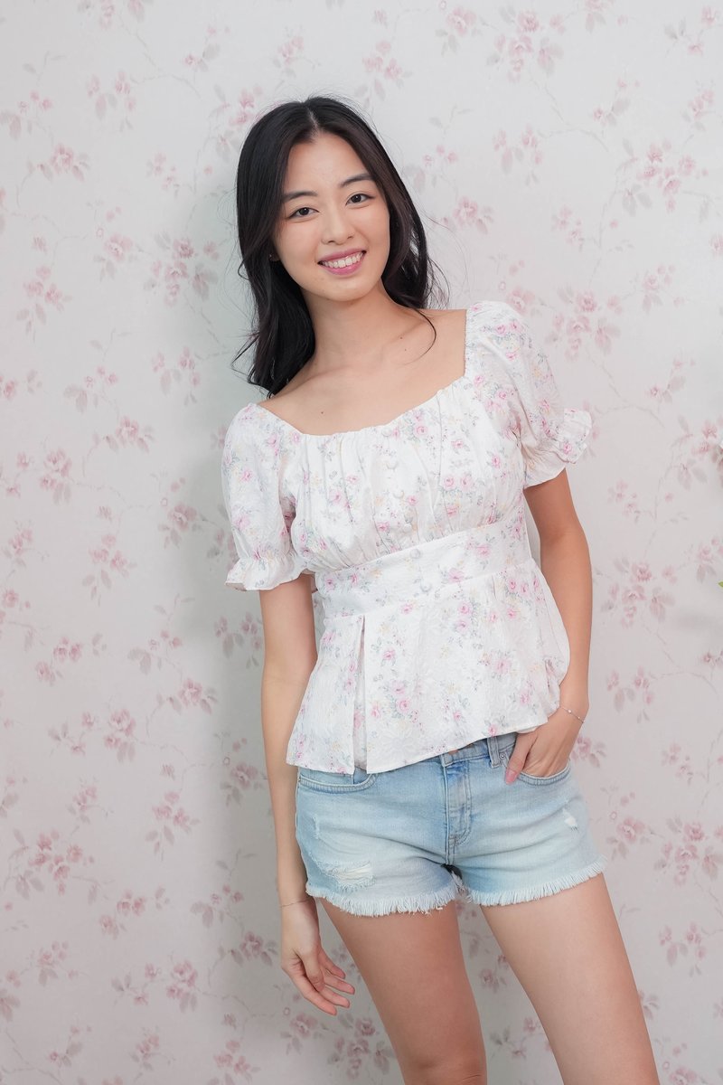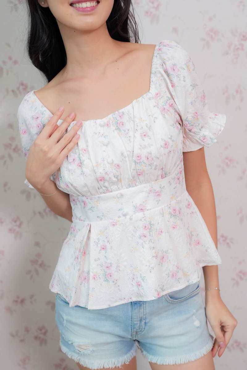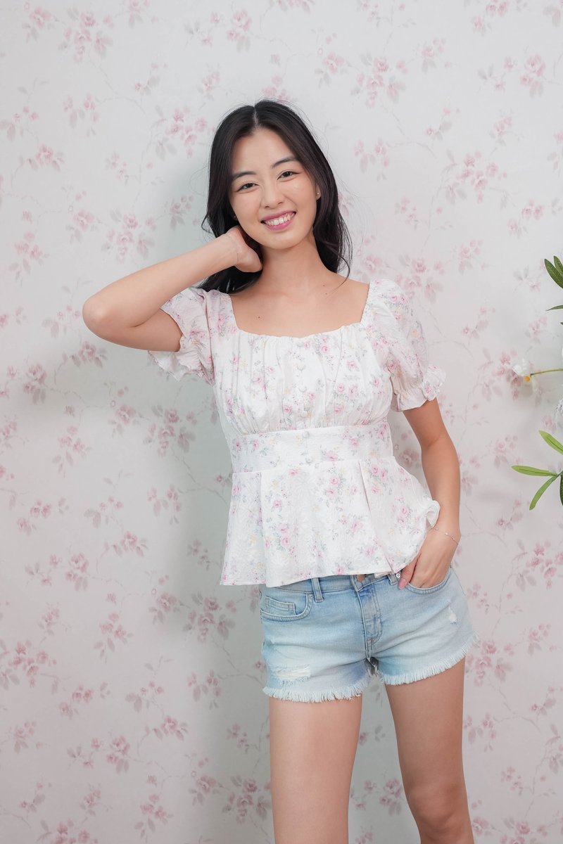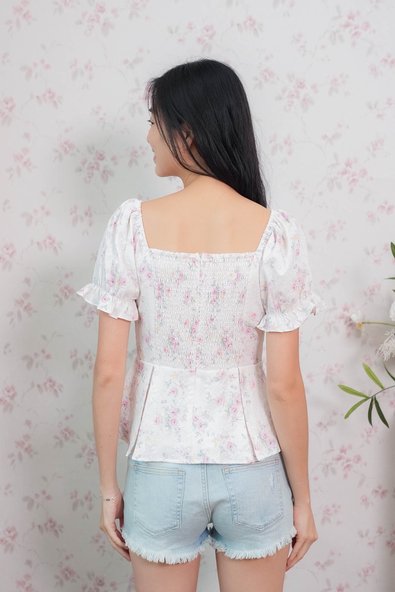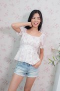 Belle Sleeve Pleated Top In Pink Floral