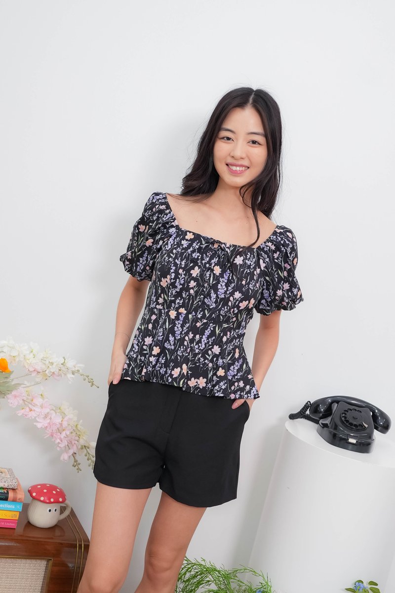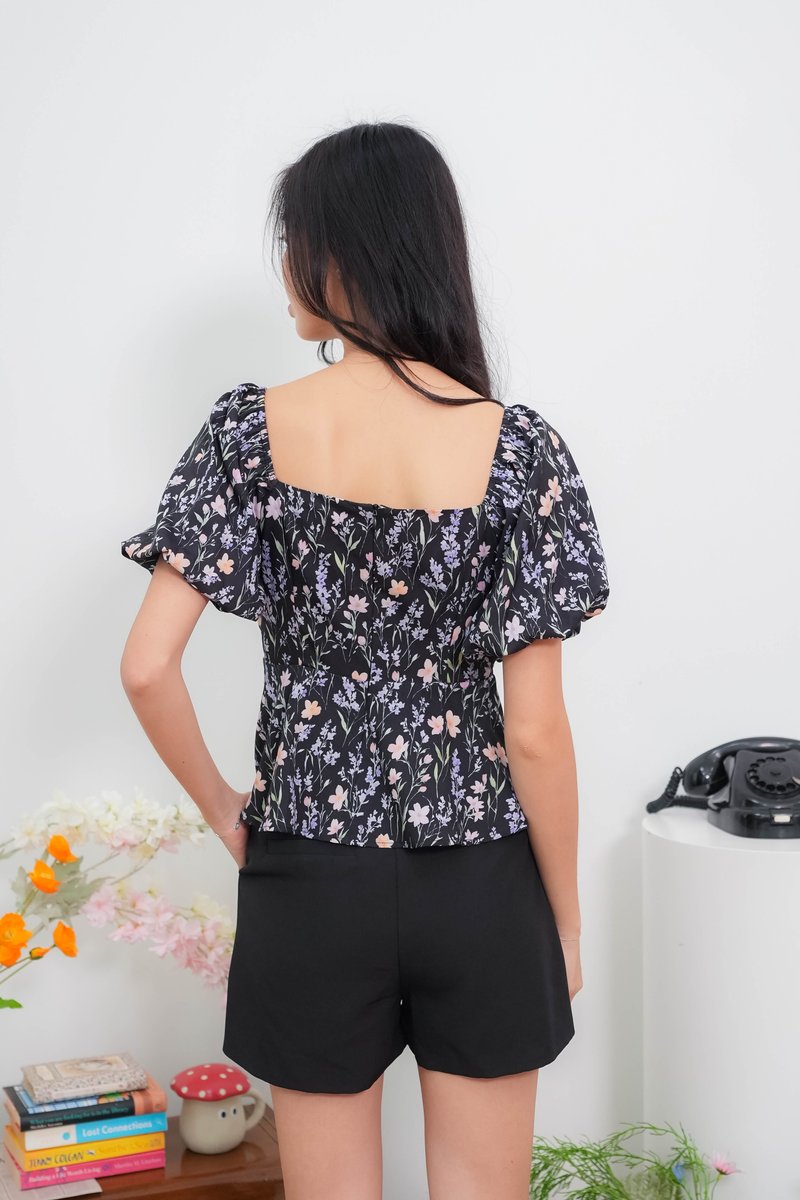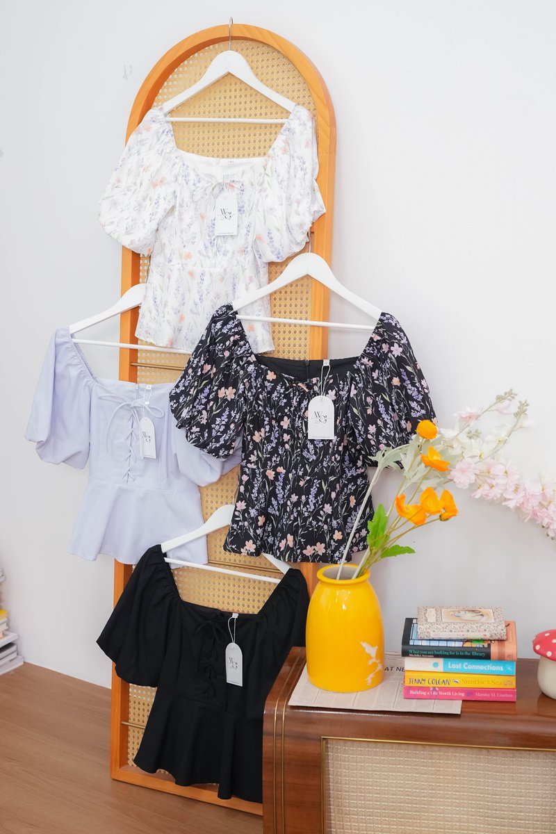 [Pre-Launch] Colette Sleeve Lace Up Top In Black Floral