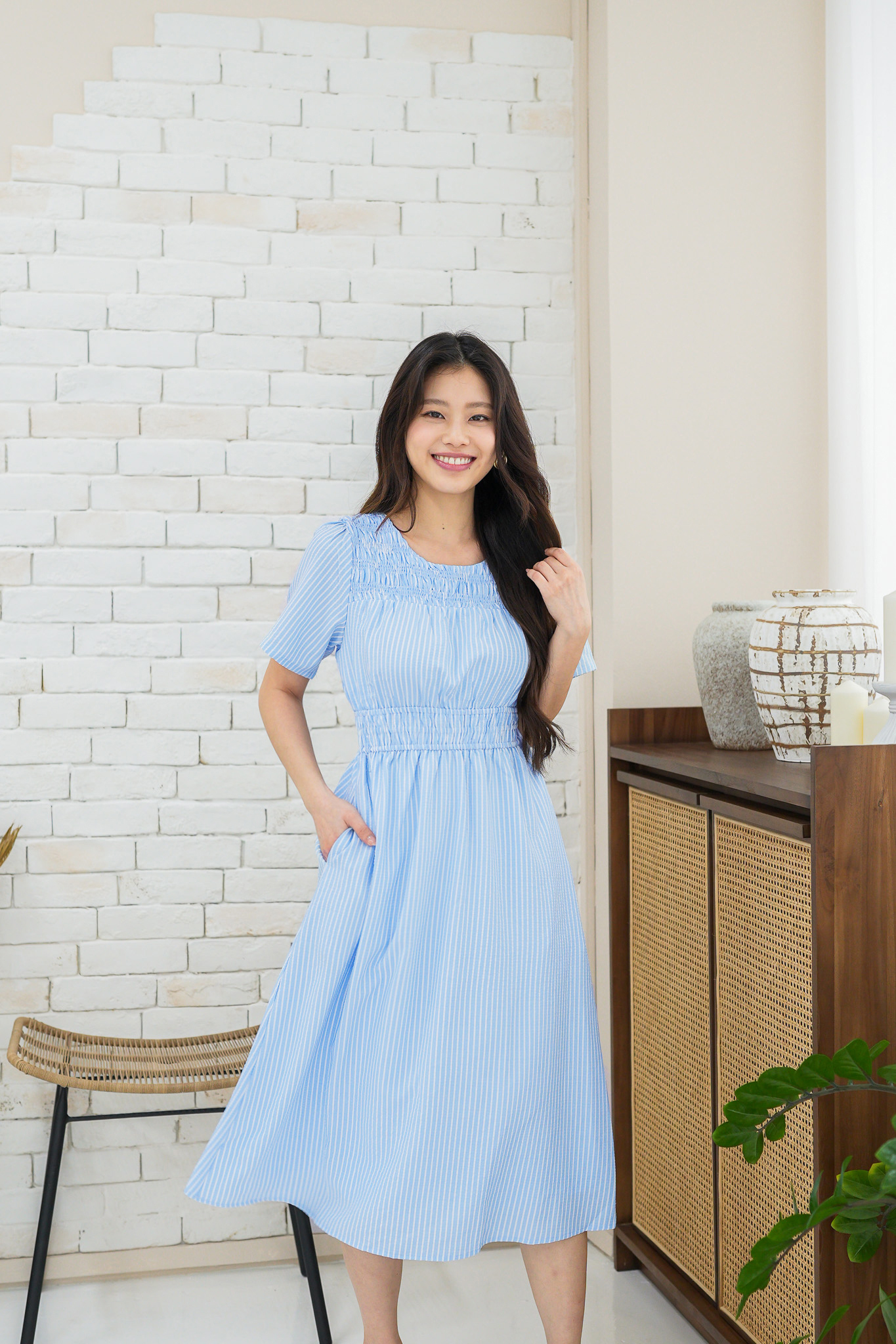 Jasmine Stripe Sleeve Dress In Sky Blue