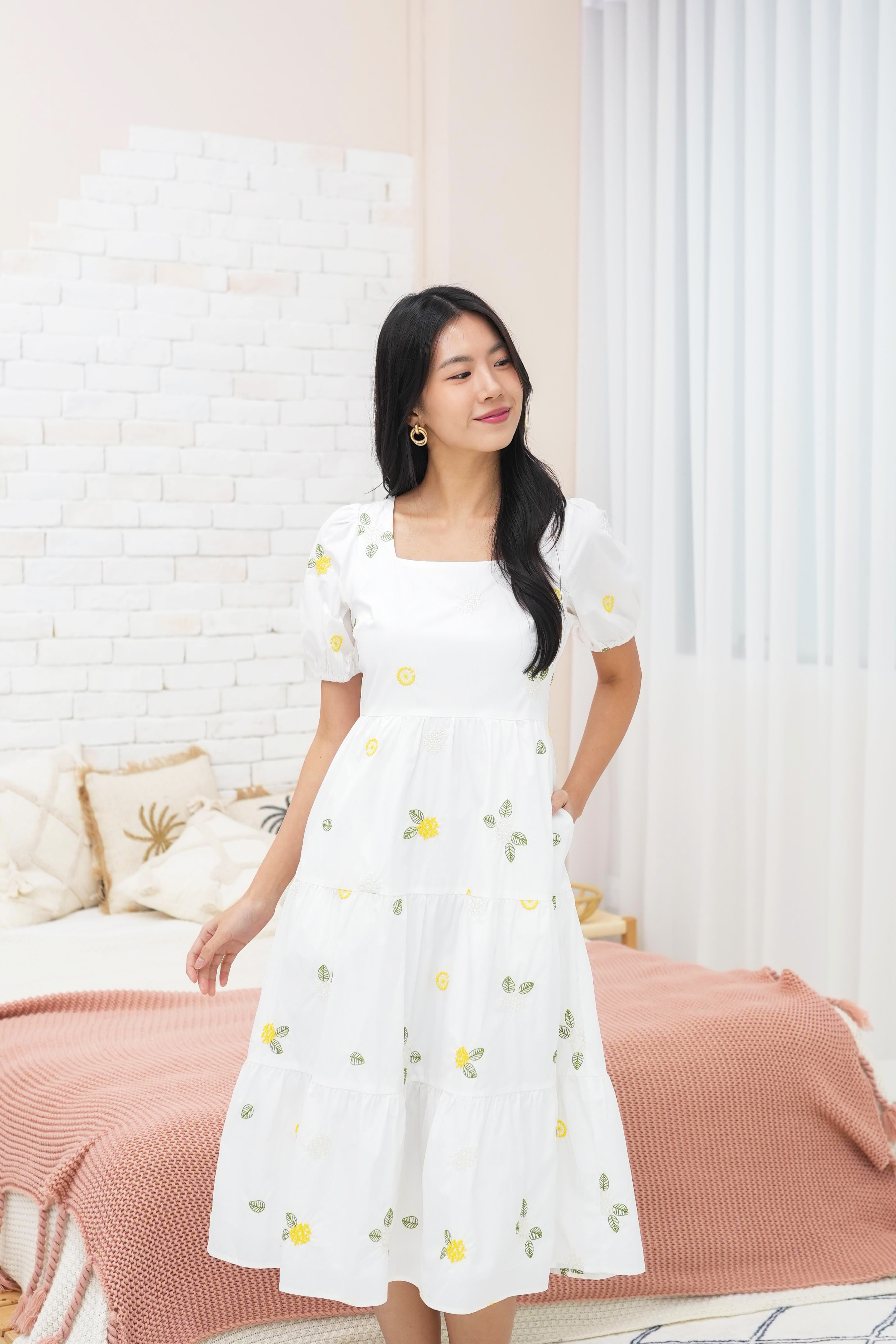 Kelsie Embroidery Tier Dress In White