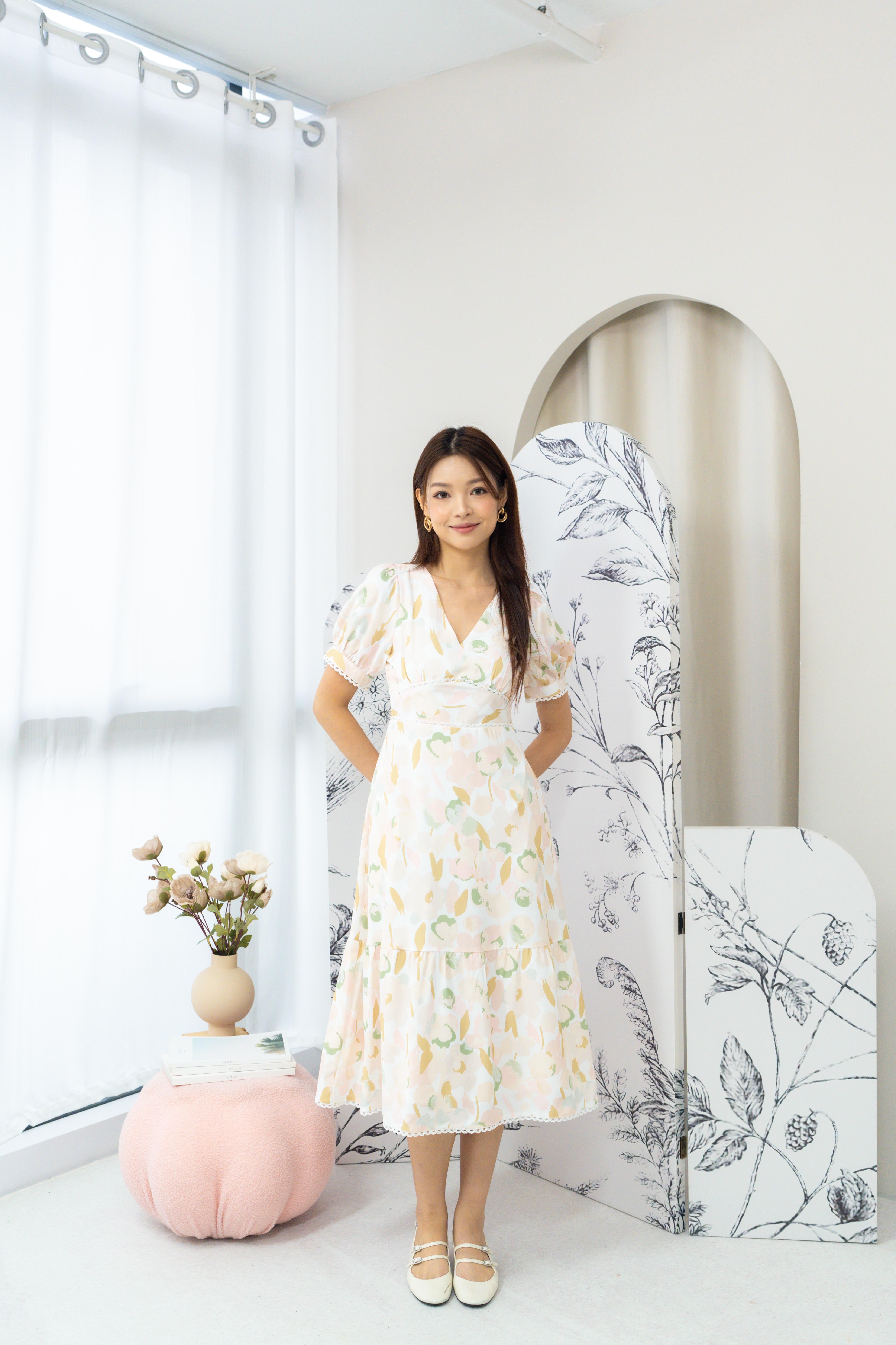 Sierra Abstract Lattice Dress In Cream